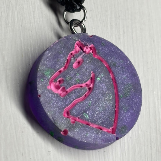 Purple Pink Knight - Handmade Resin Chess Necklace