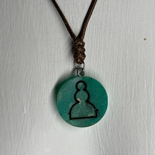Aqua Green Pawn - Handmade Resin Chess Necklace