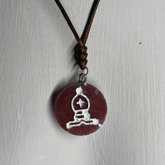 Ember Red Bishop - Handmade Resin Chess Necklace