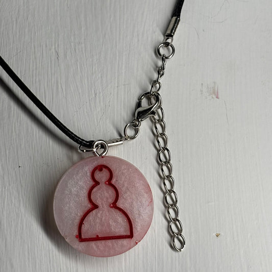 Simple White/Red Pawn - Handmade Resin Chess Necklace