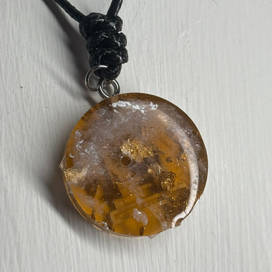 Amber Crystal Rook - Handmade Resin Chess Necklace