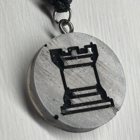 Dark Silver Rook - Handmade Resin Chess Necklace