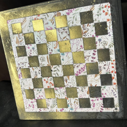 Mint Green Pink Flowers - Scrapbook Chess Board