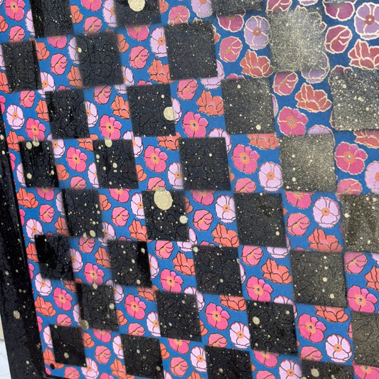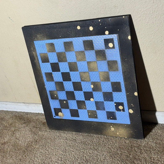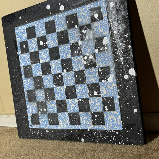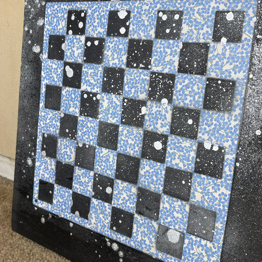 Blue Flower Chrome Drip - Large Scrapbook Chess Board