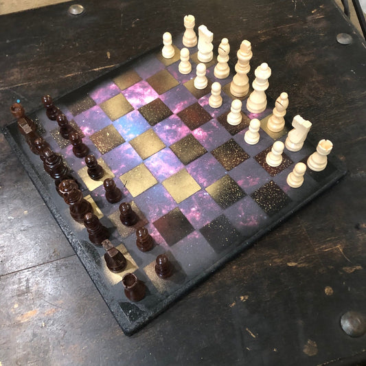 Scrapbook Chess Set - Vibrant Glaxy (Resin Pieces)