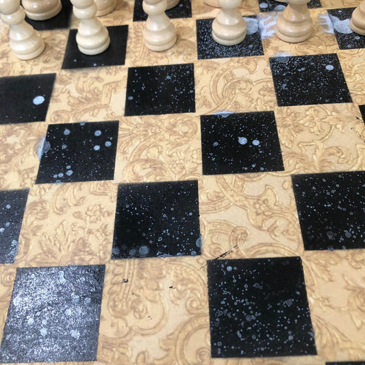 Scrapbook Chess Set - Vintage Stripes (Resin Pieces)