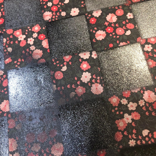 Particle board layered with a sheet of scrapbook paper board that doubles as a work of art. Each set is a unique, one of a kind creation, crafted by hand to ensure that no two sets are alike