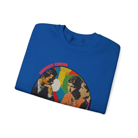 70's Themed Chess - Blue Chess Crewneck Sweater
