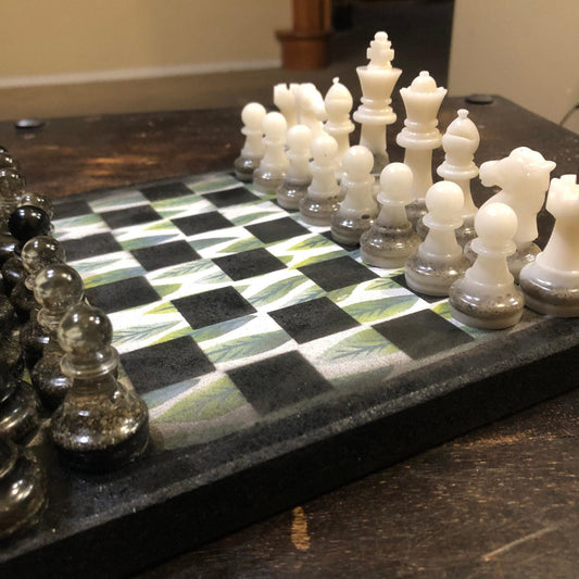Scrapbook Chess Set - Love You Green (Resin Pieces)