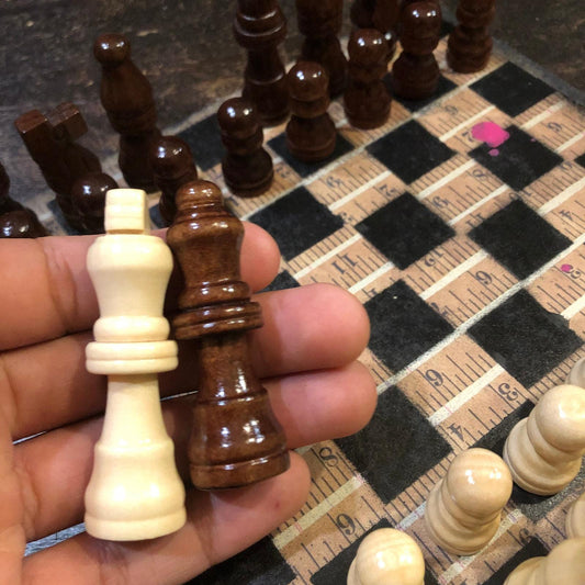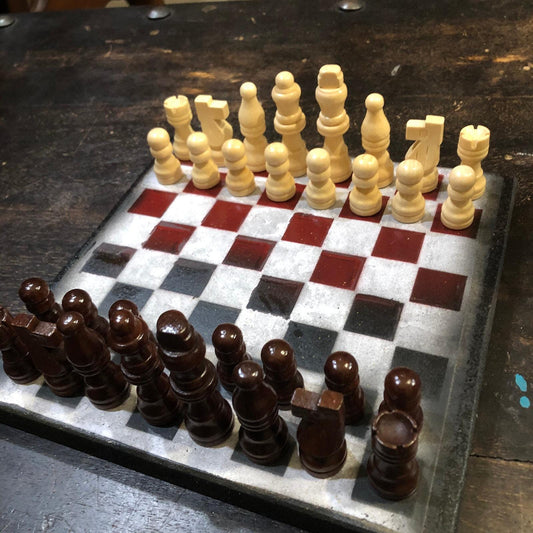 Check out our Small hand made chess sets! Theses chess boards and chess pieces are all single stock and one of ones. These chess sets are close to a 8x8 size and are perfect for traveling or small spaces.