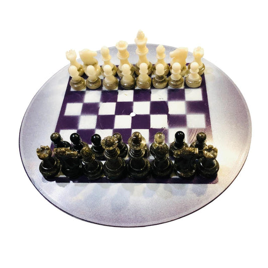 Vinyl Chess Set - Dark Purple & White (Resin Pieces)