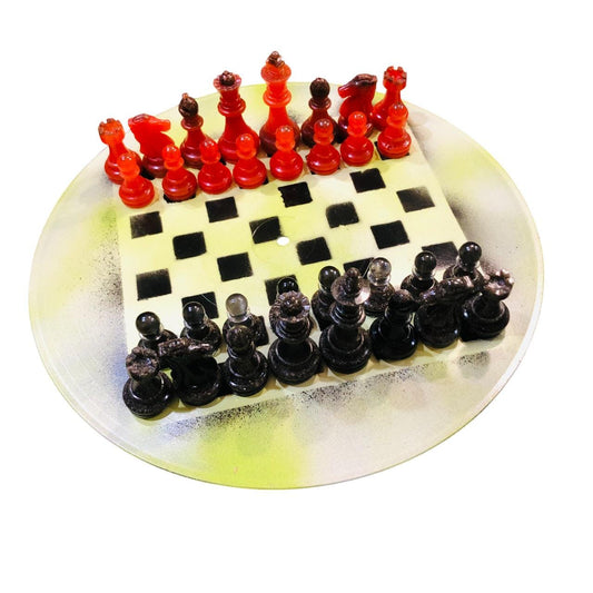 Check out our unique hand made chess sets made with original record vinyl. Theses chess boards and chess pieces are all single stock and unique one of ones.
