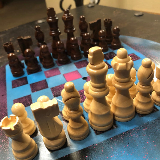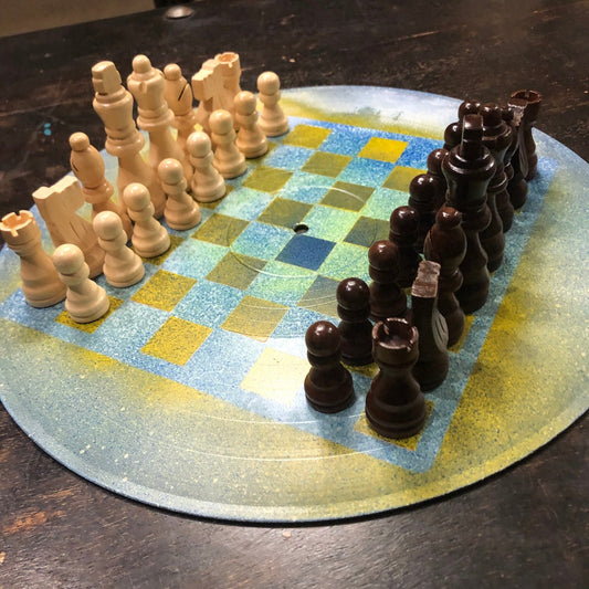 Check out our unique hand made chess sets made with original record vinyl. Theses chess boards and chess pieces are all single stock and unique one of ones.