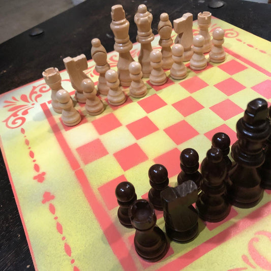 Painted Chess Set - Yellow Pink Mix