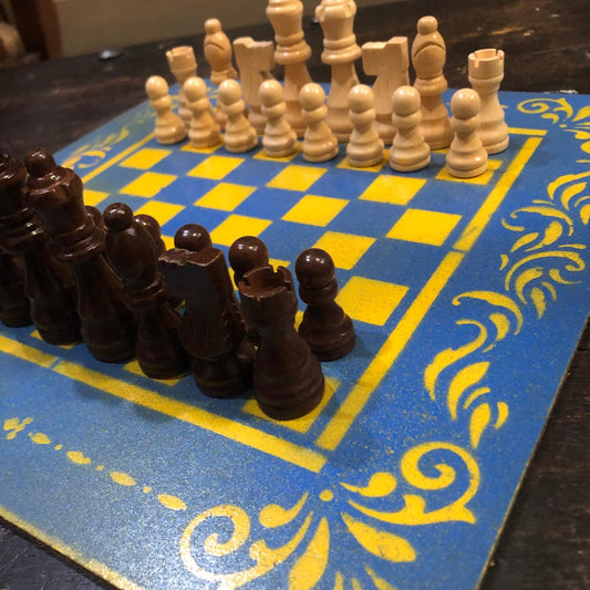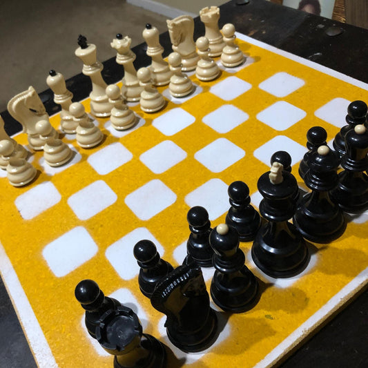 Large Painted Chess Set - Yellow & White