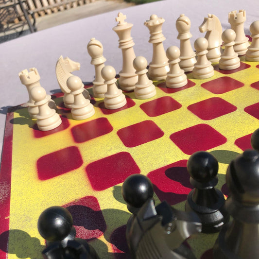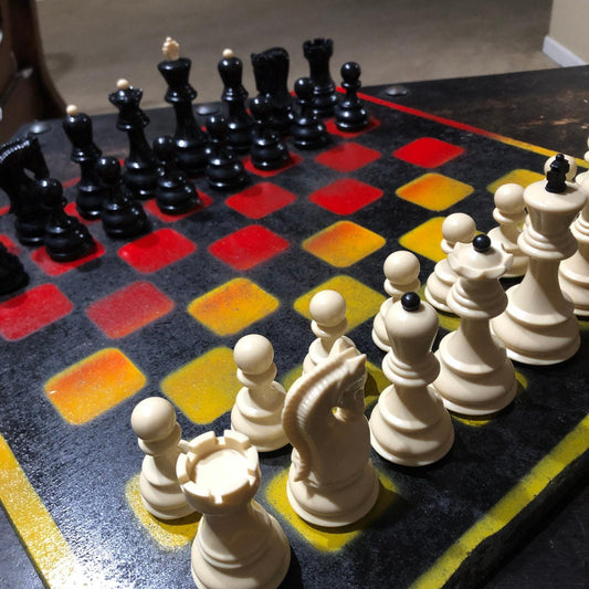 Large Painted Chess Set - Red Black & Yellow
