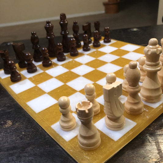 Resin Chess Set - Golden White (Wood Pieces)