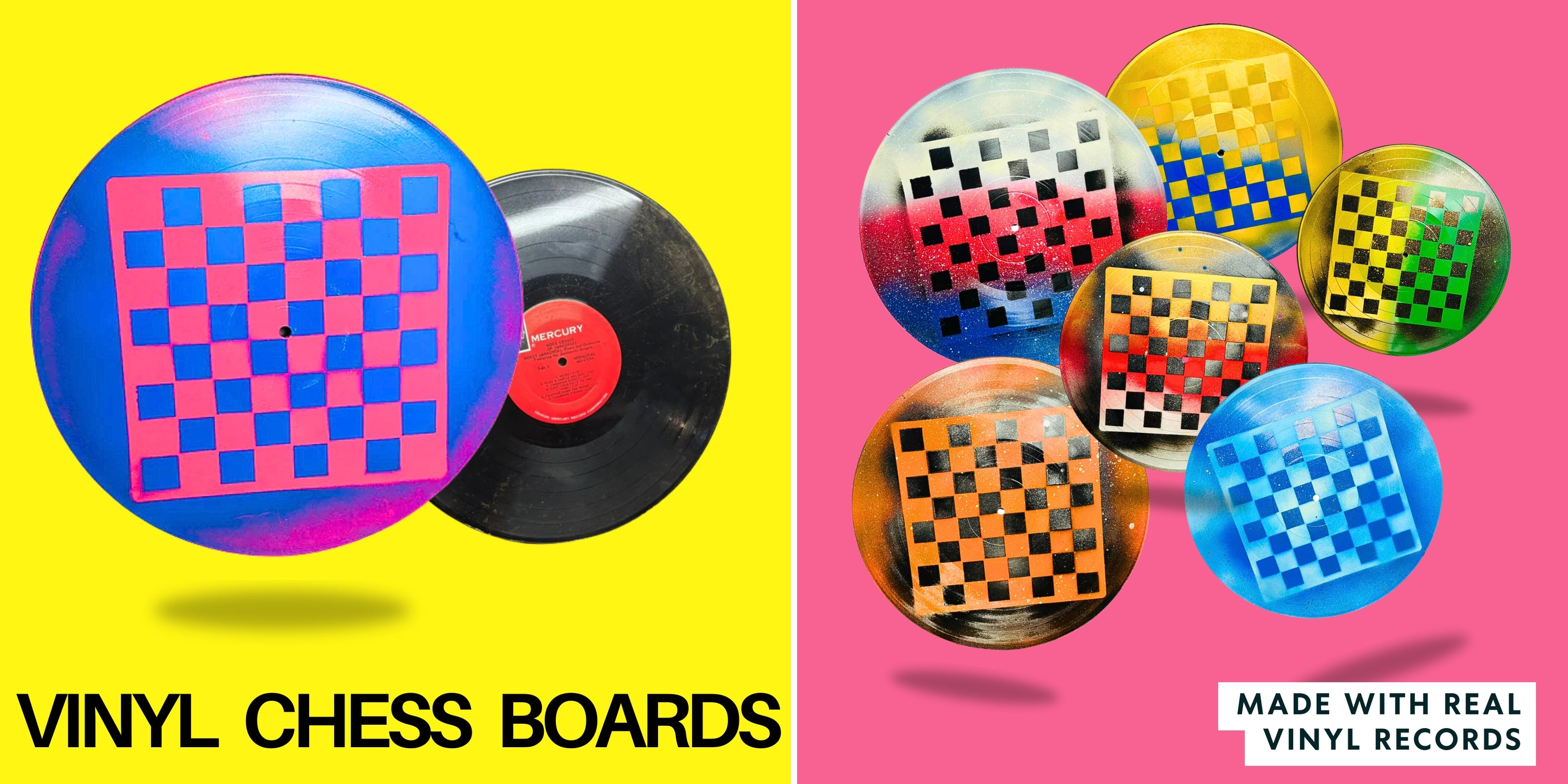 Pink Yellow Chrome - Vinyl Chess Board