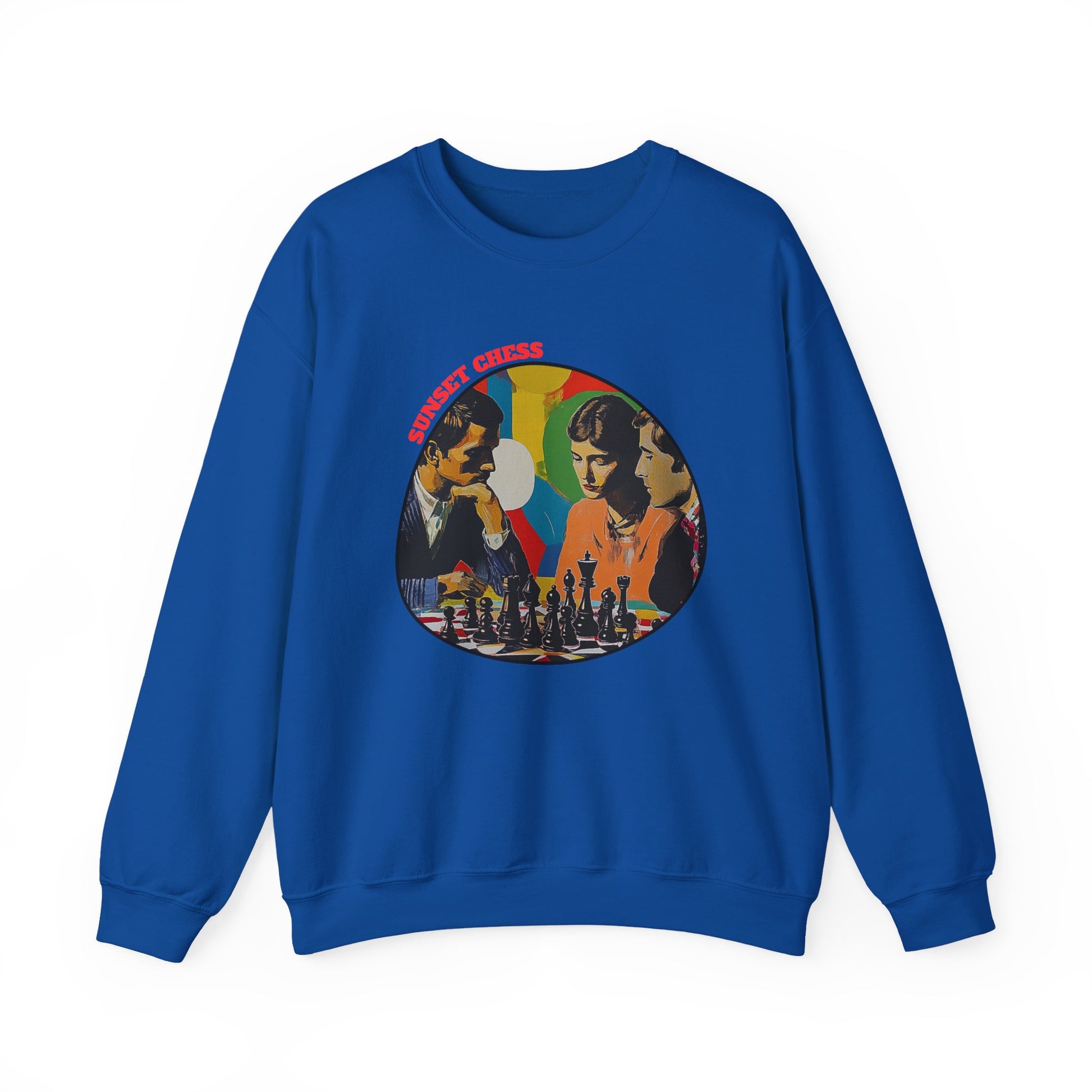 70's Themed Chess - Blue Chess Crewneck Sweater