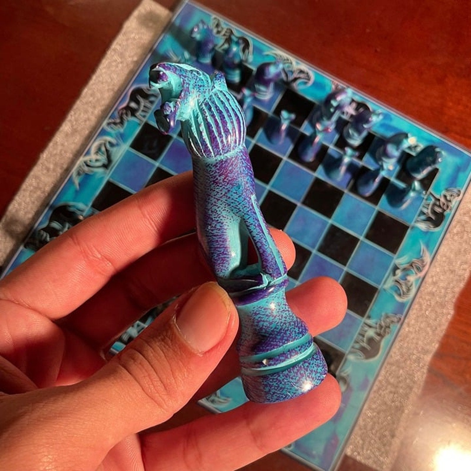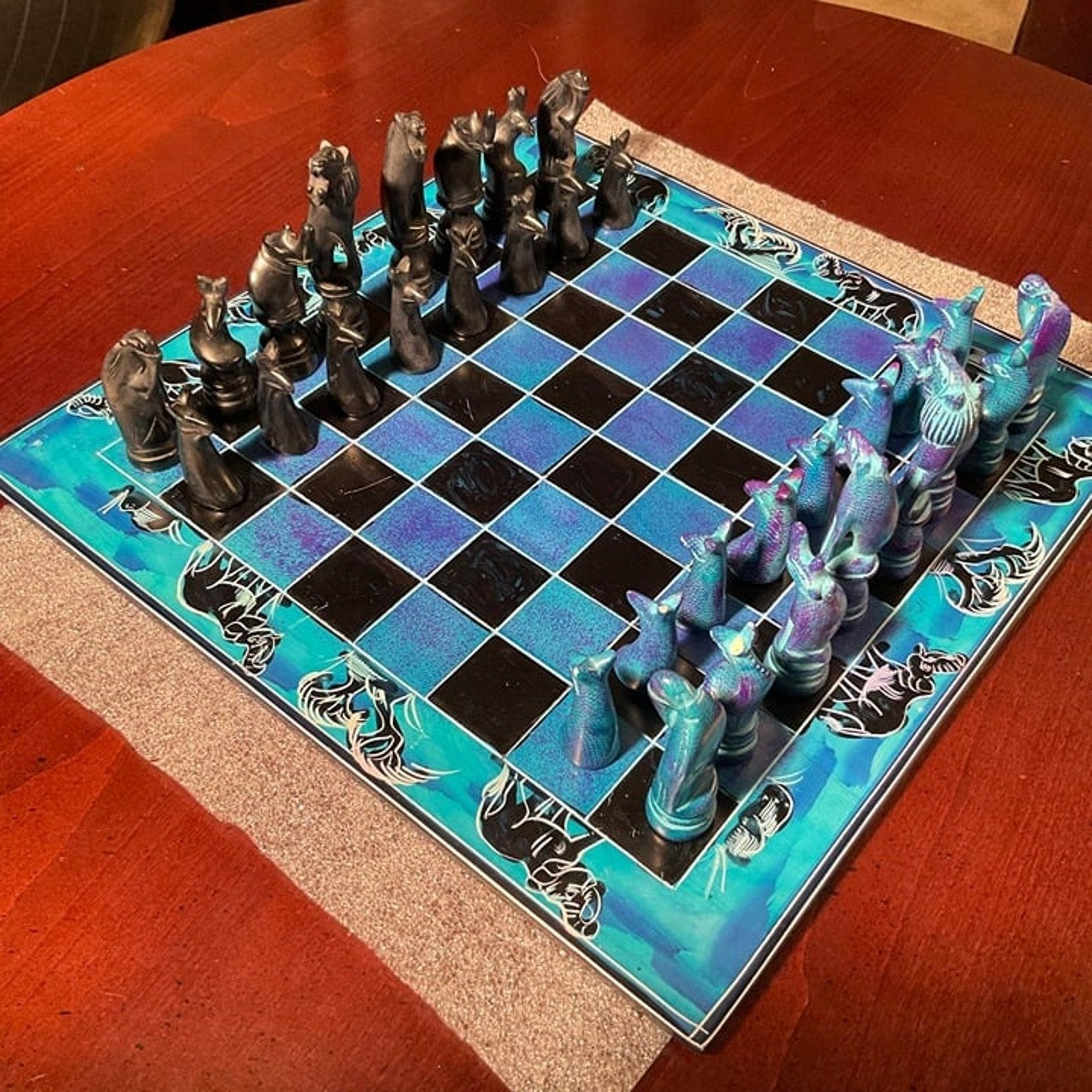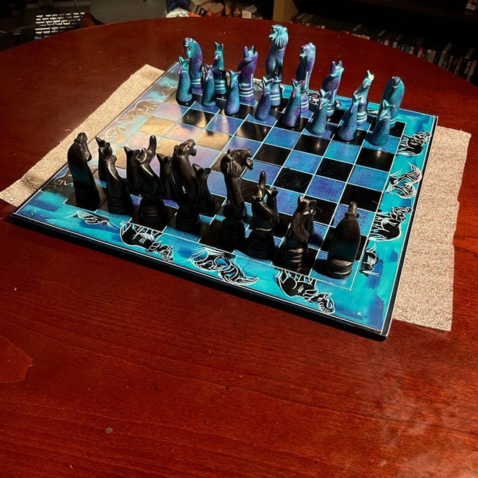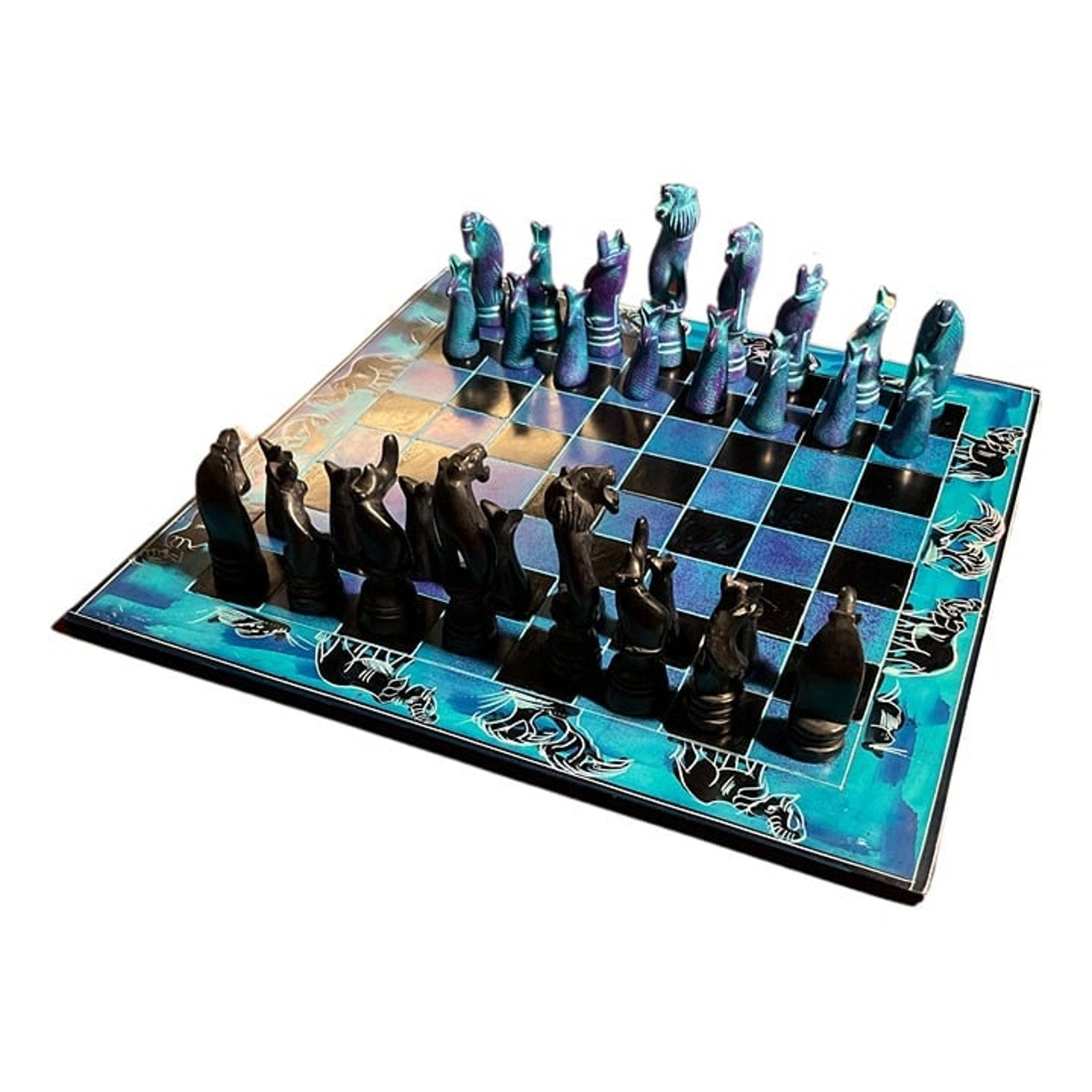 African Vintage Chess Set - Blue Royal Chess Board