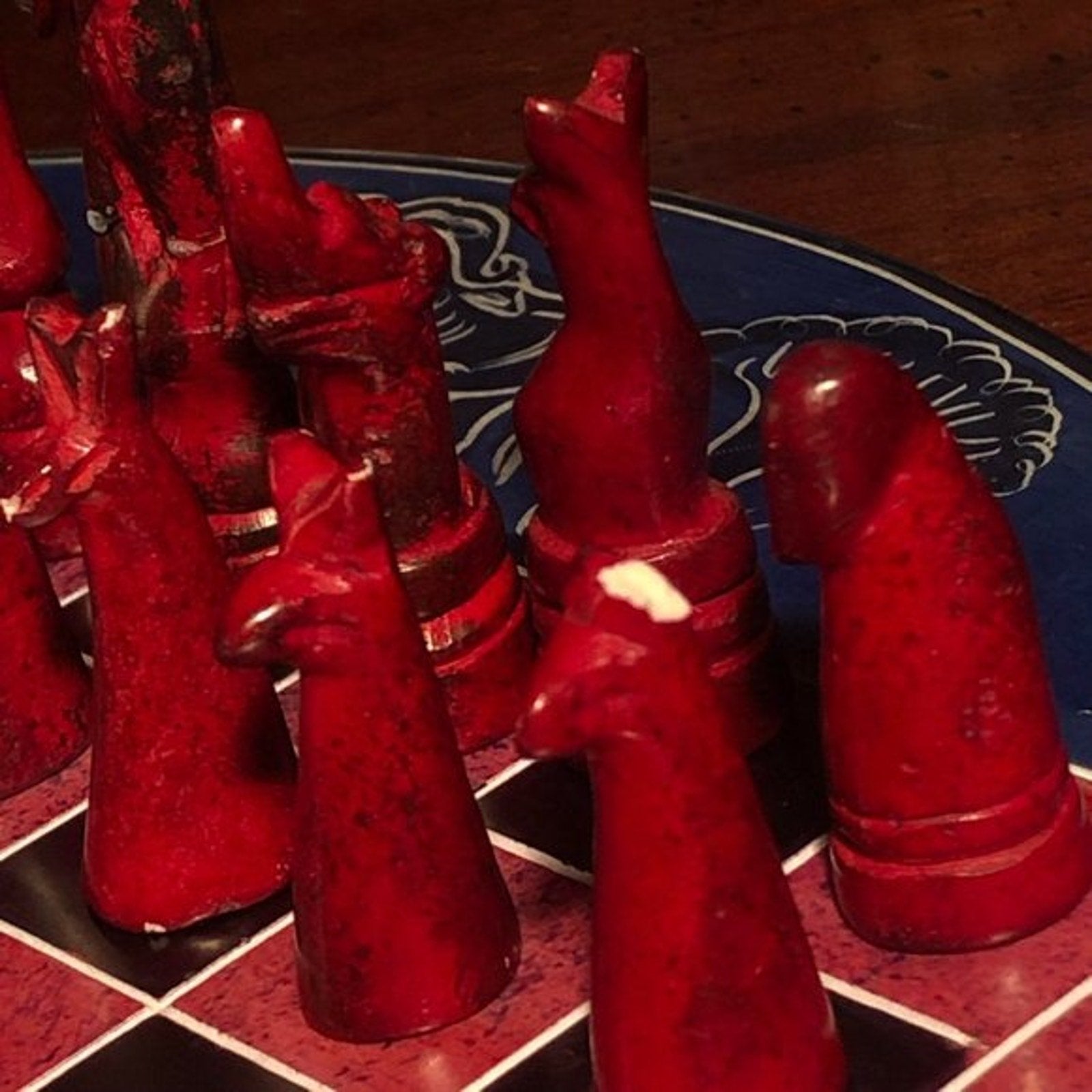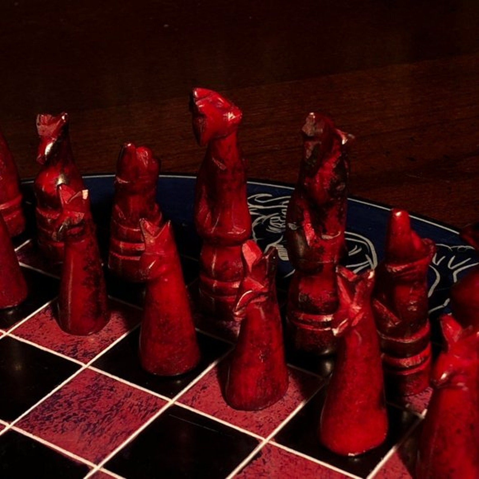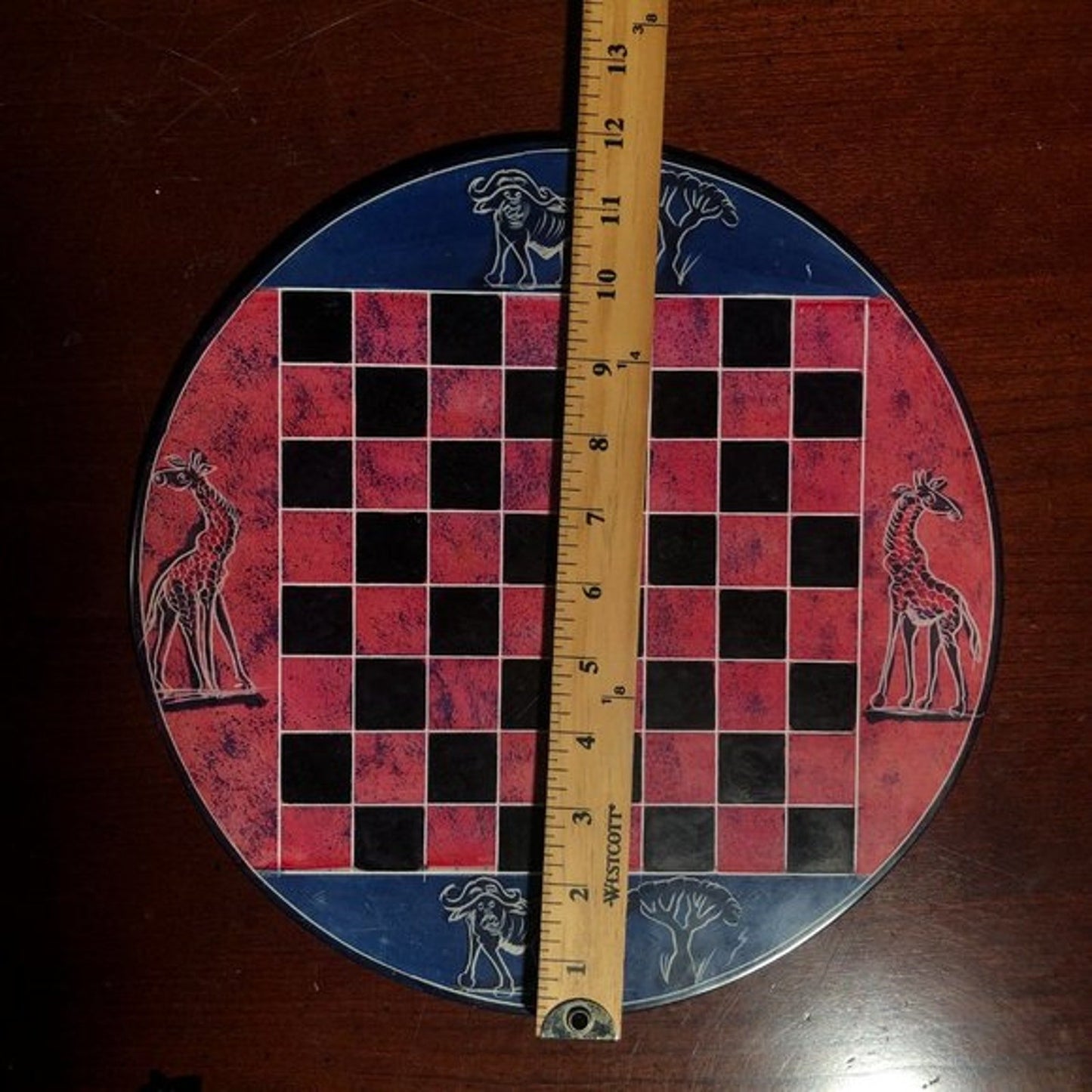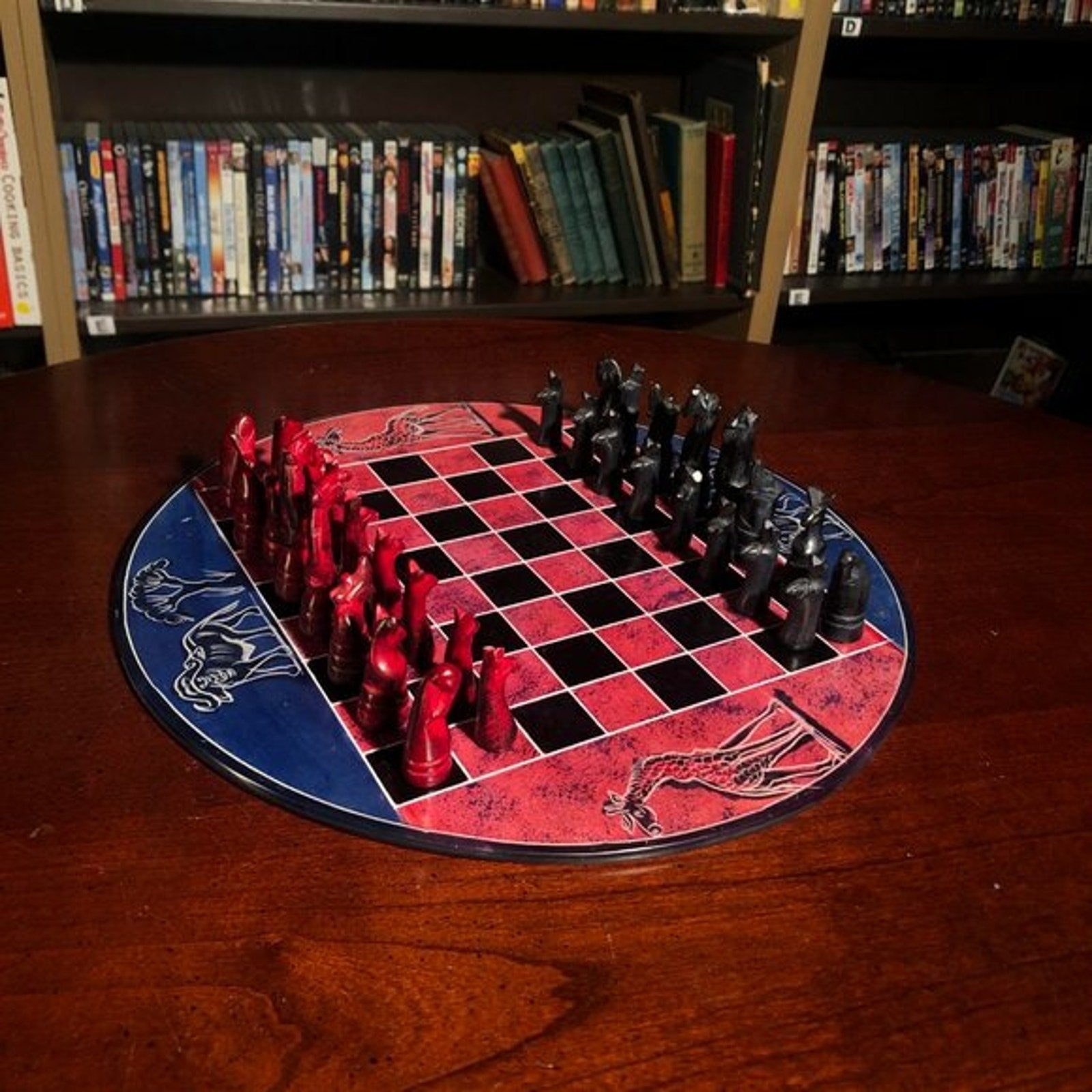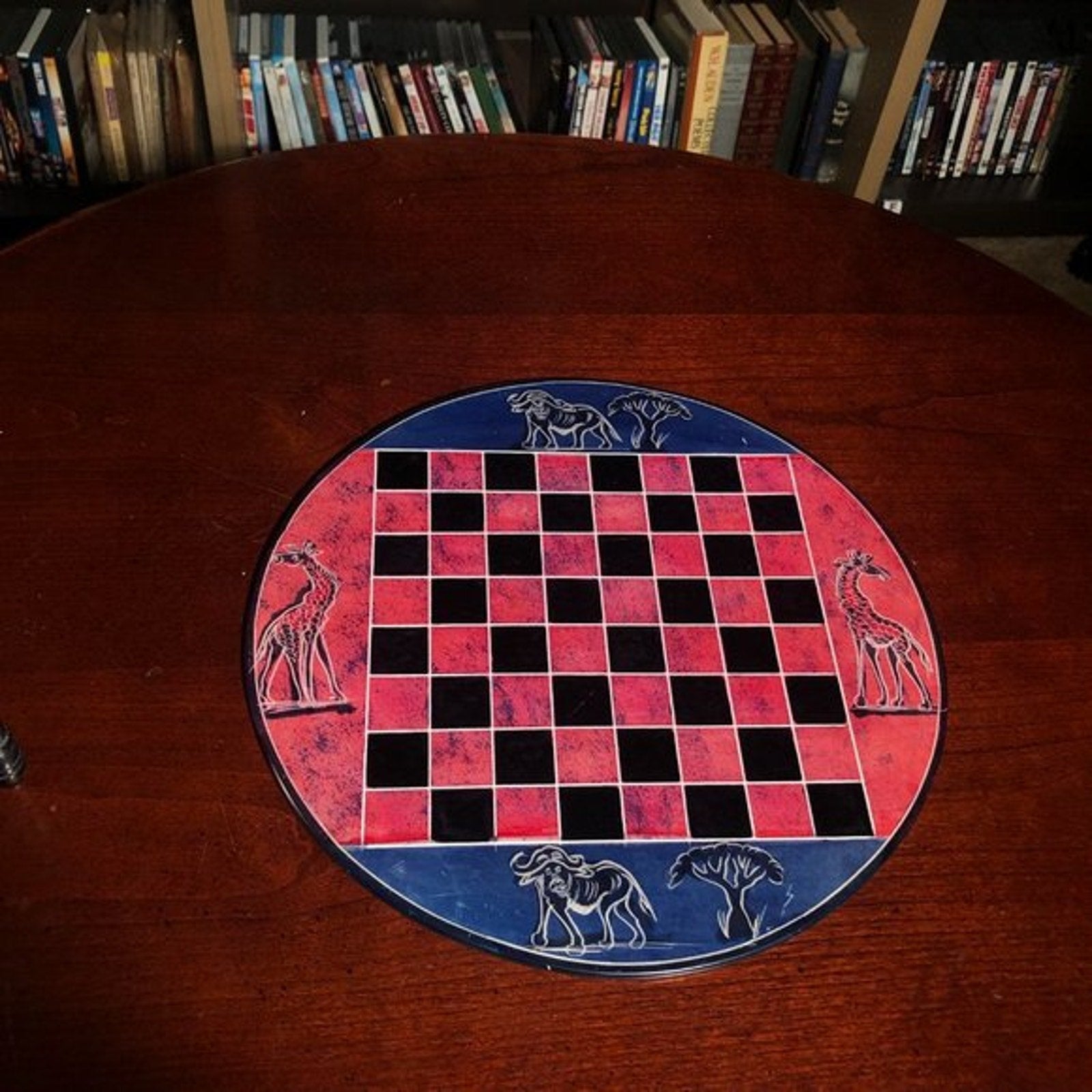 Crafted by African artisans in Western Kenya using traditional techniques, this soapstone chess set will become a conversation piece during play or on display! The board features square inlay pieces of natural painted soapstone. Each safari animal piece is hand carved in soapstone.