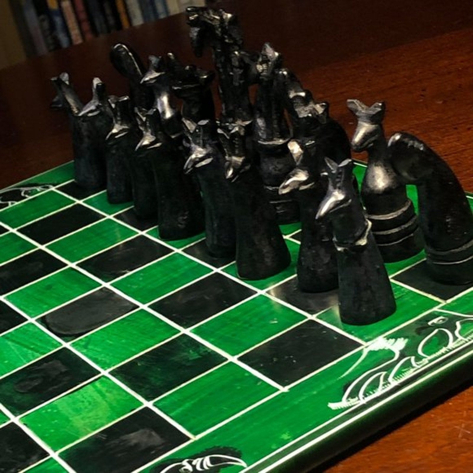 African Vintage Chess Set - Green Chess Board