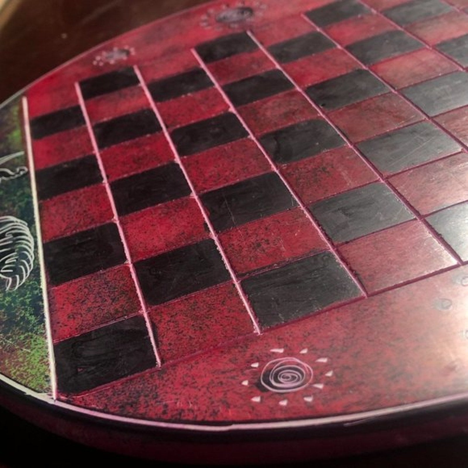 Board is vintage and comes as the photos show. Scratches here and there can be expected. But all pieces and are there. no major damage.