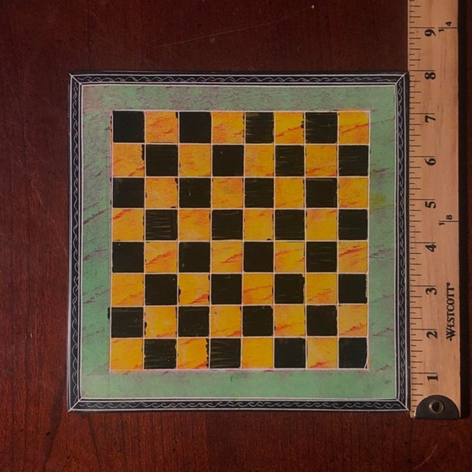 * Board and piece measurements in the photos.