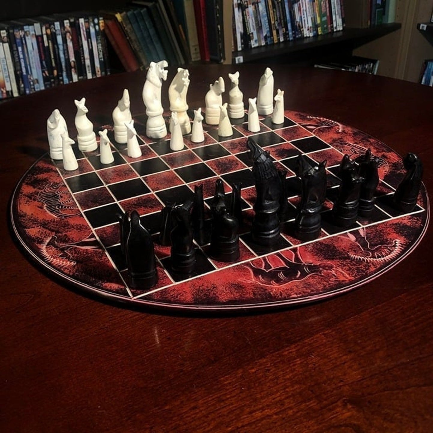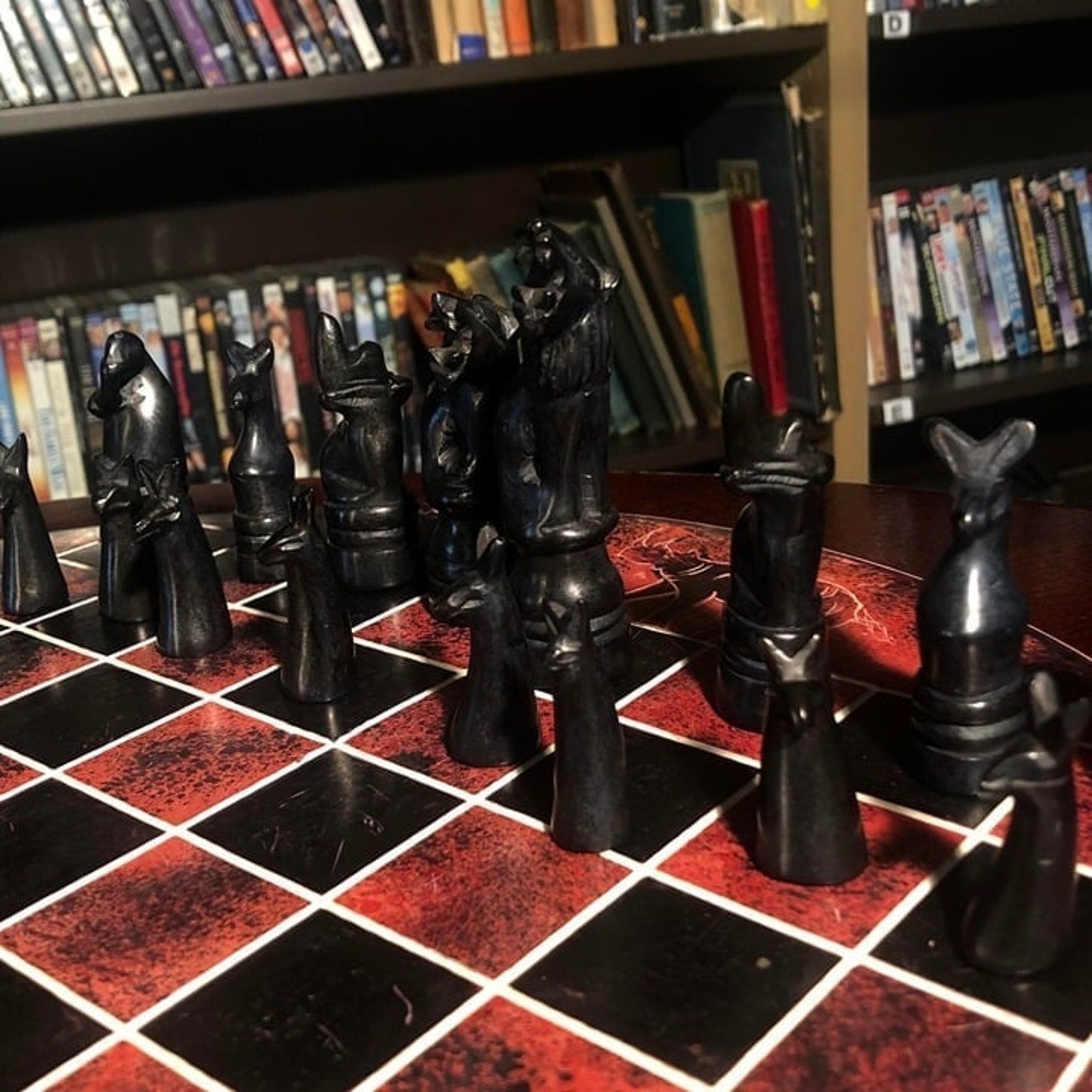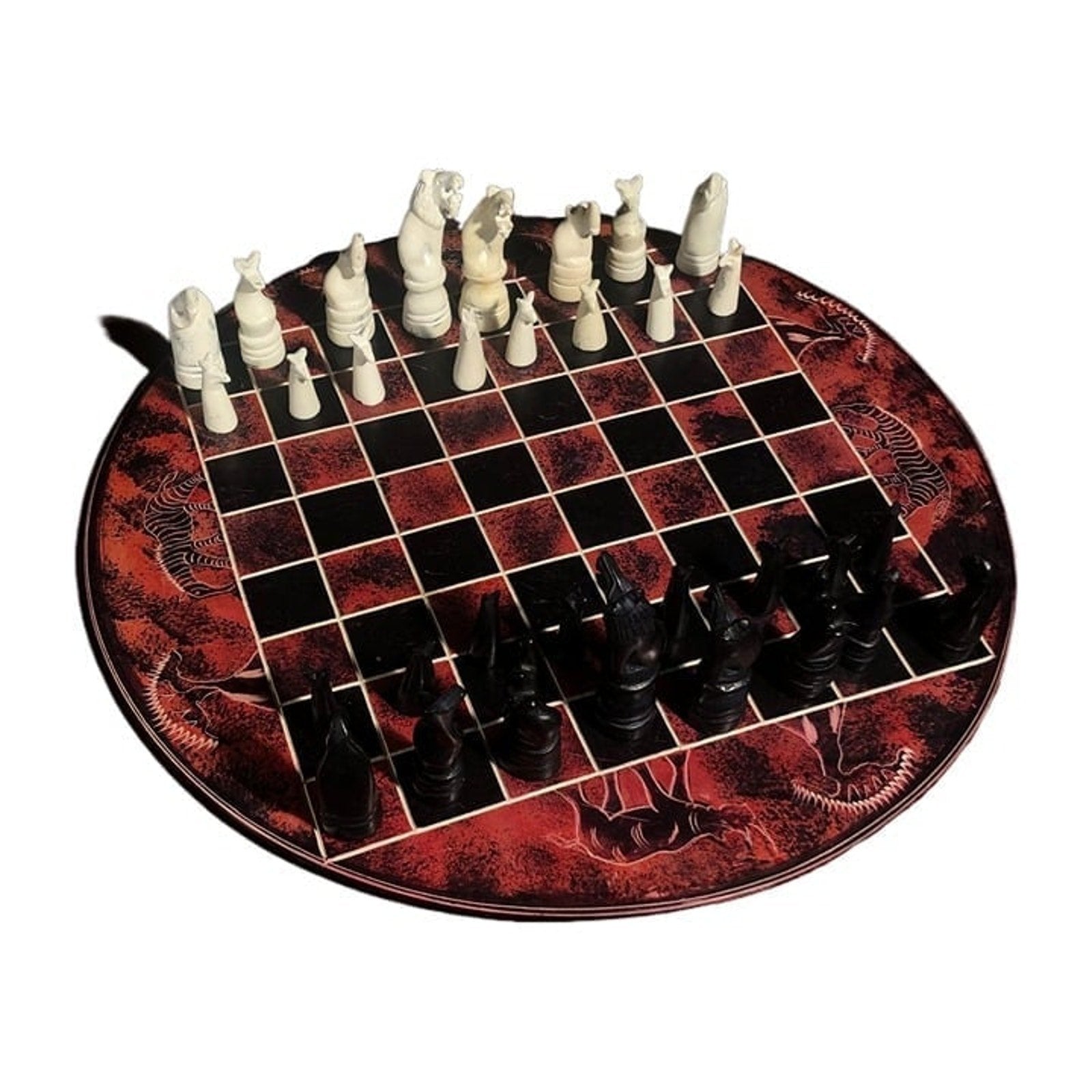 African Vintage Chess Set - Large Burgundy Royal Chess Board