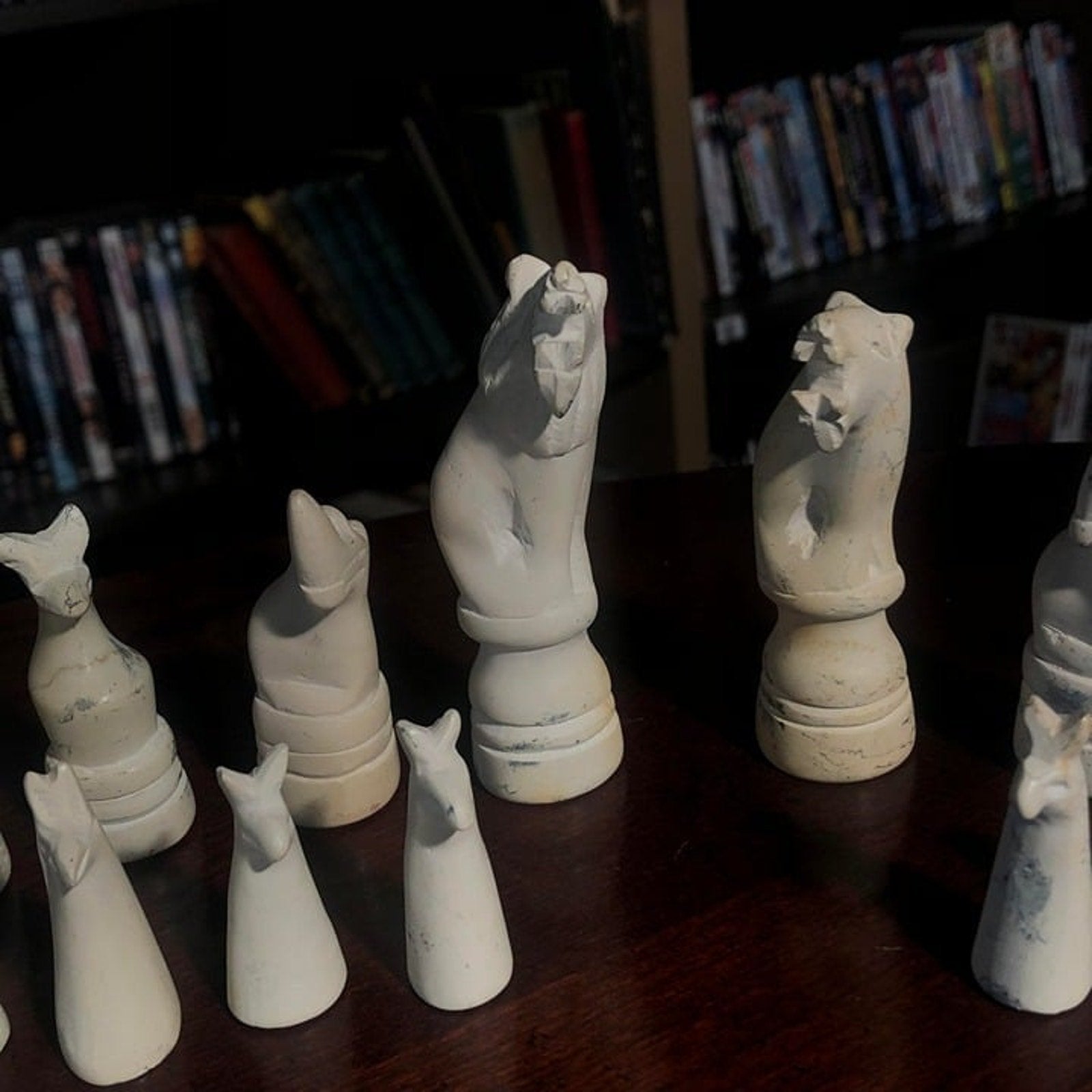 Crafted by African artisans in Western Kenya using traditional techniques, this soapstone chess set will become a conversation piece during play or on display! The board features square inlay pieces of natural painted soapstone. Each safari animal piece is hand carved in soapstone.
