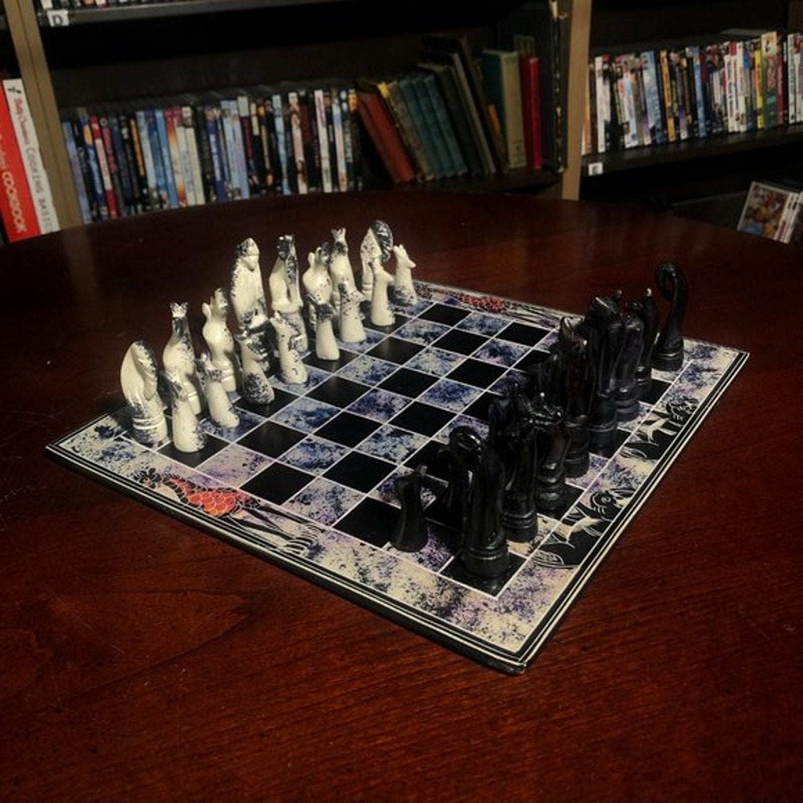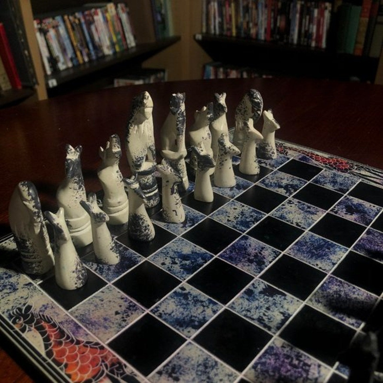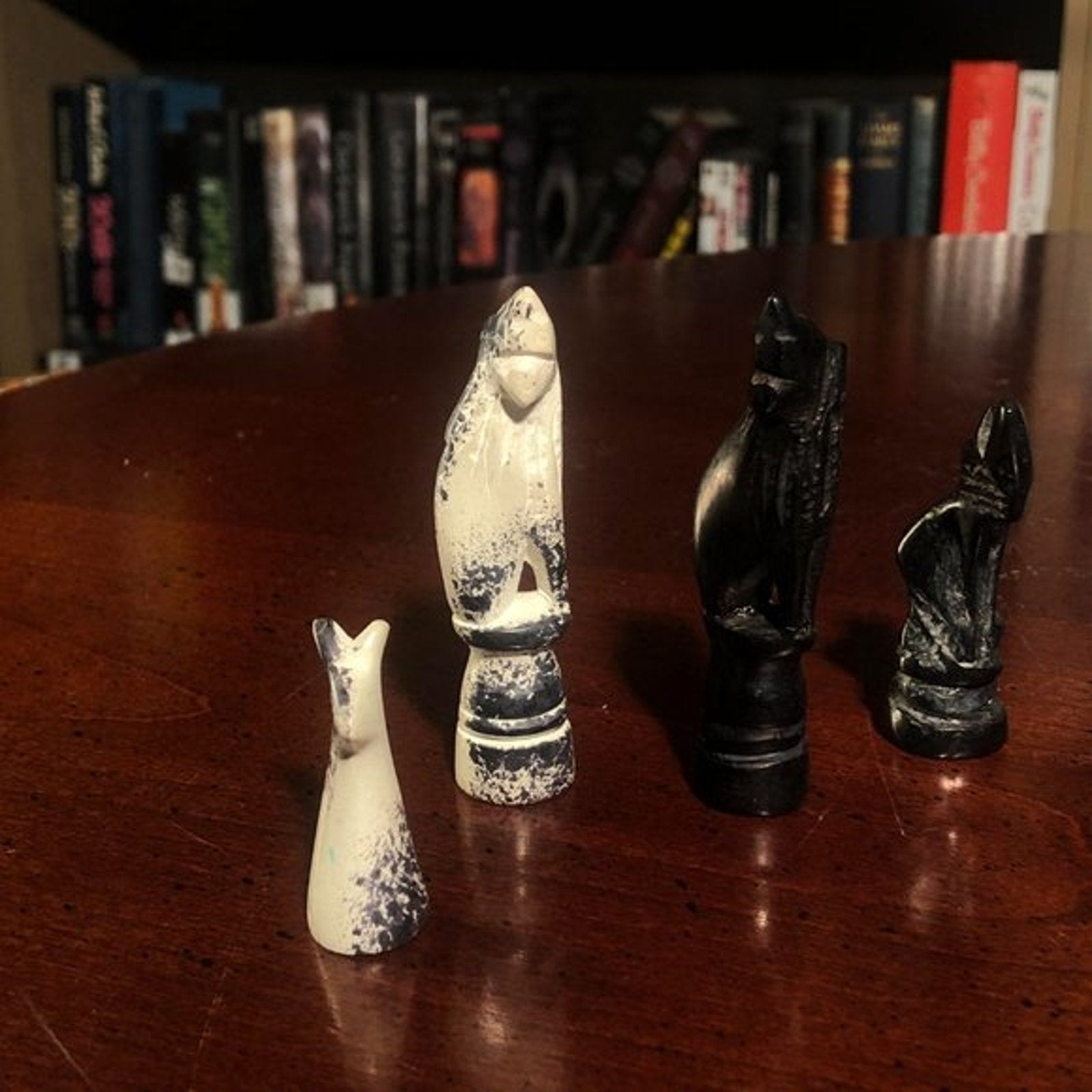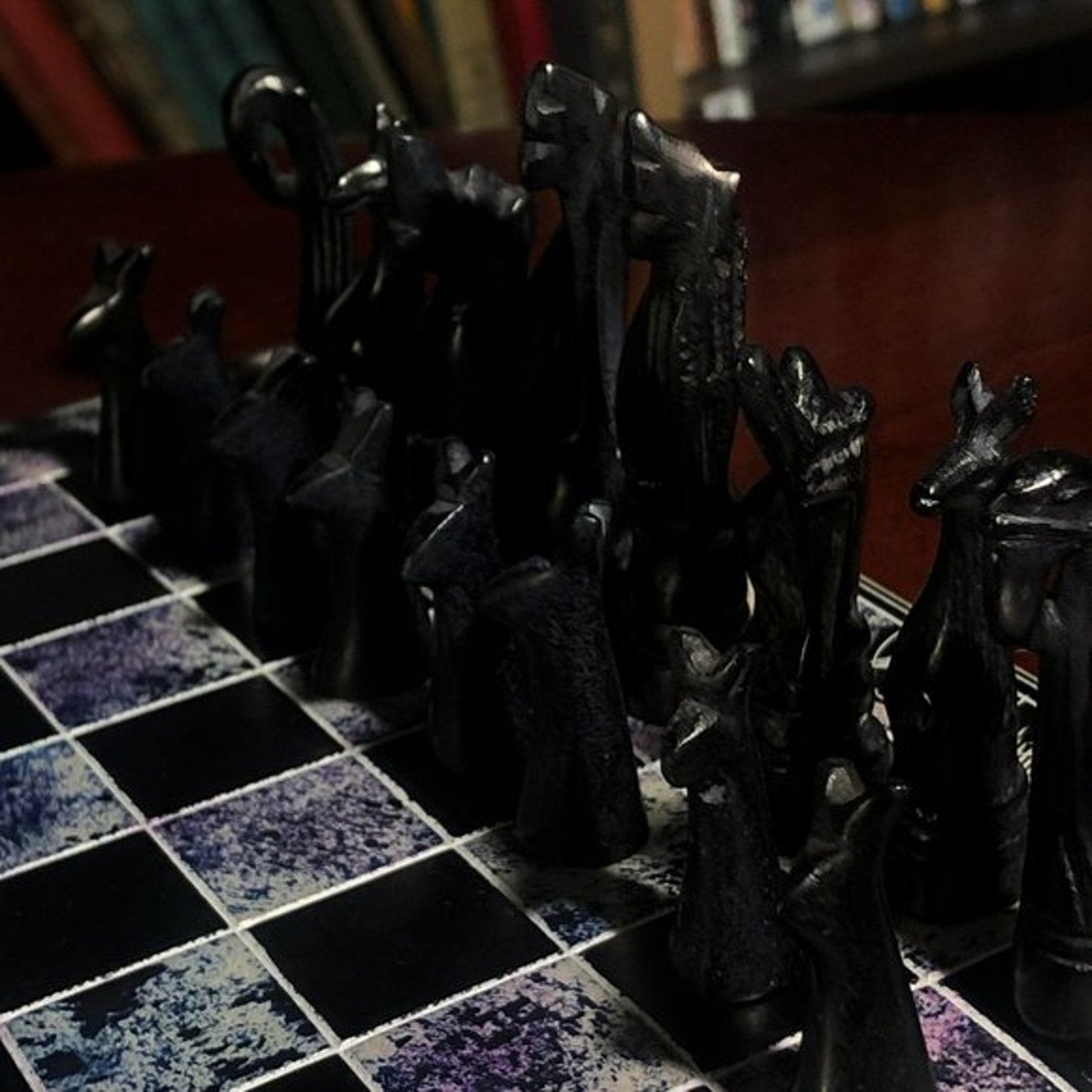 Crafted by African artisans in Western Kenya using traditional techniques, this soapstone chess set will become a conversation piece during play or on display! The board features square inlay pieces of natural painted soapstone. Each safari animal piece is hand carved in soapstone.