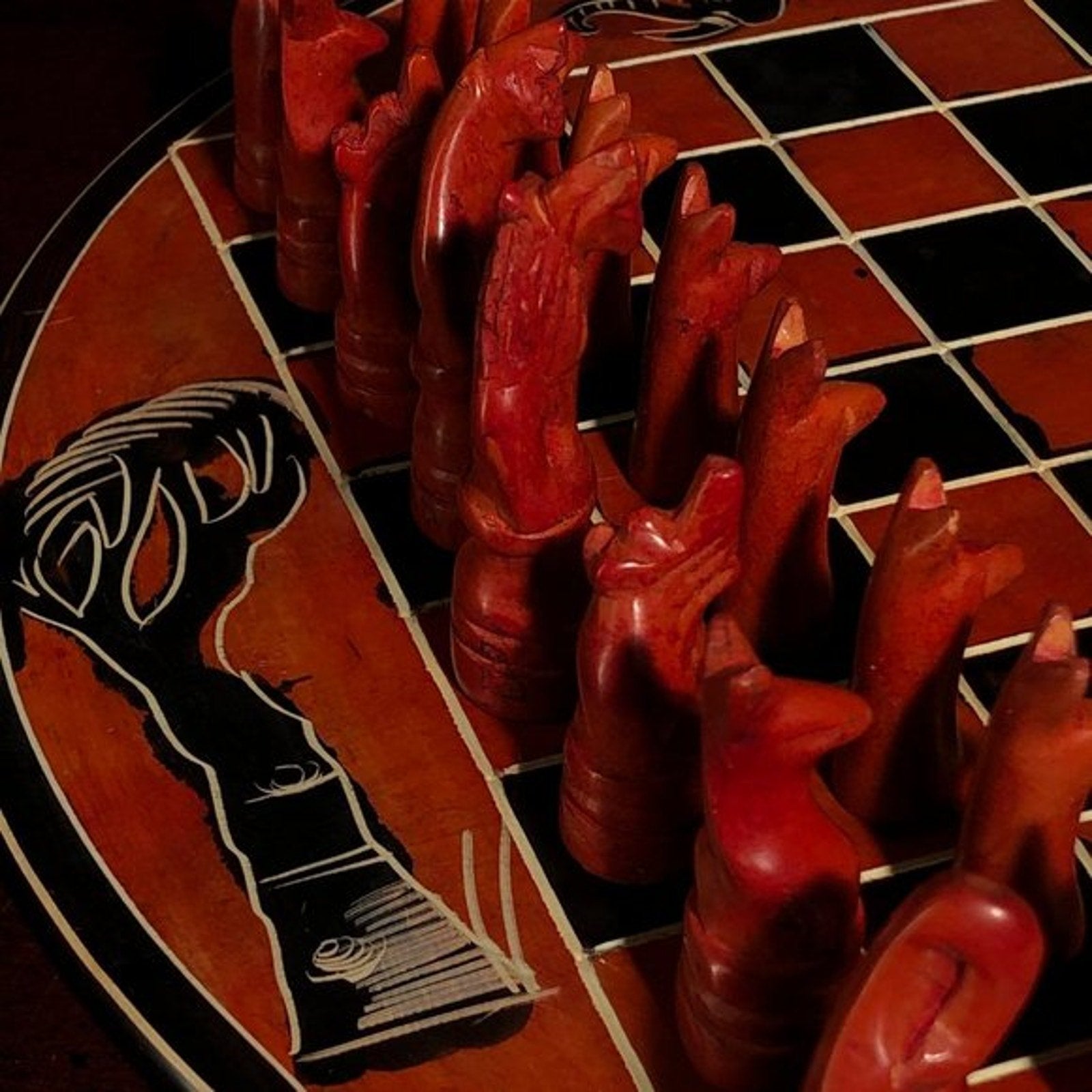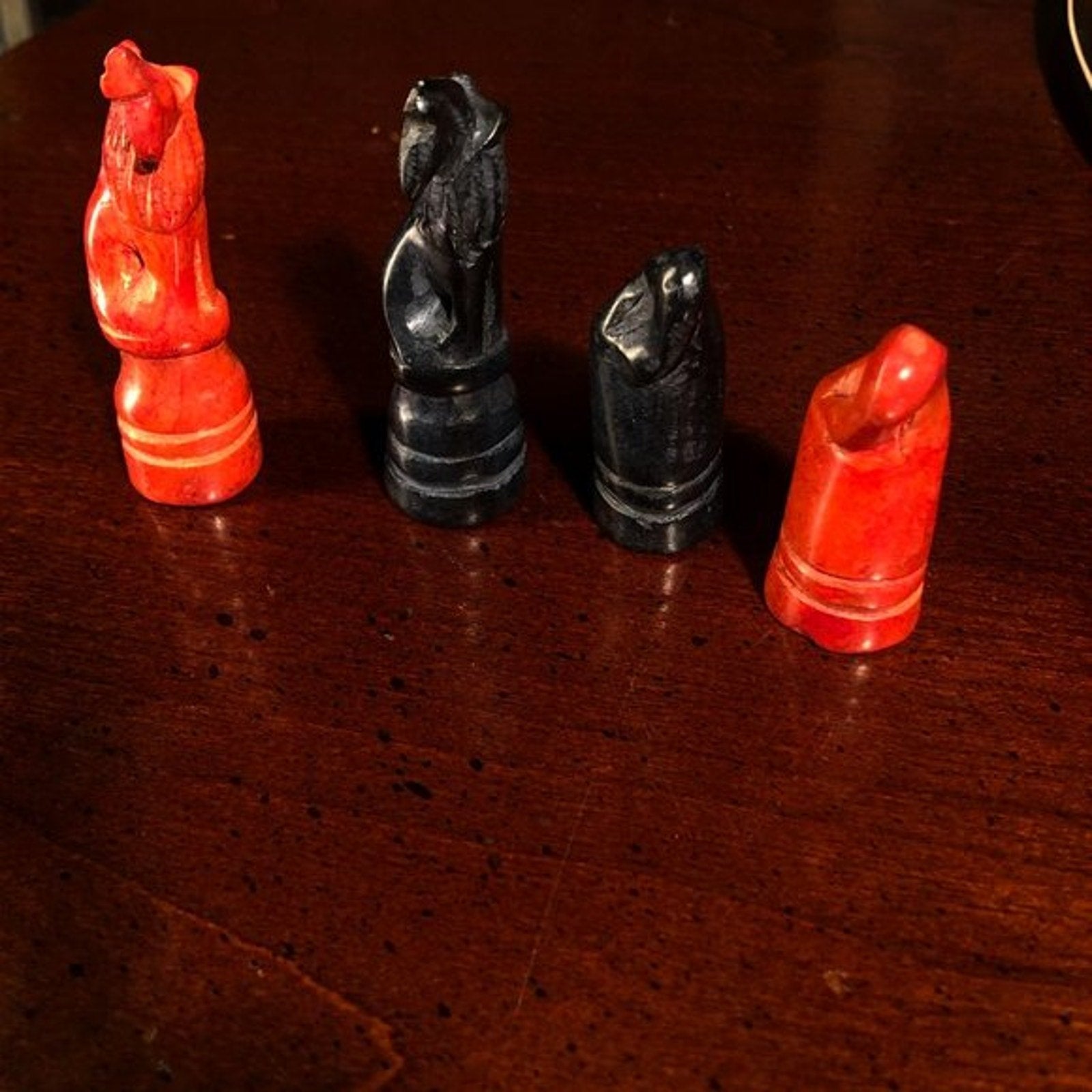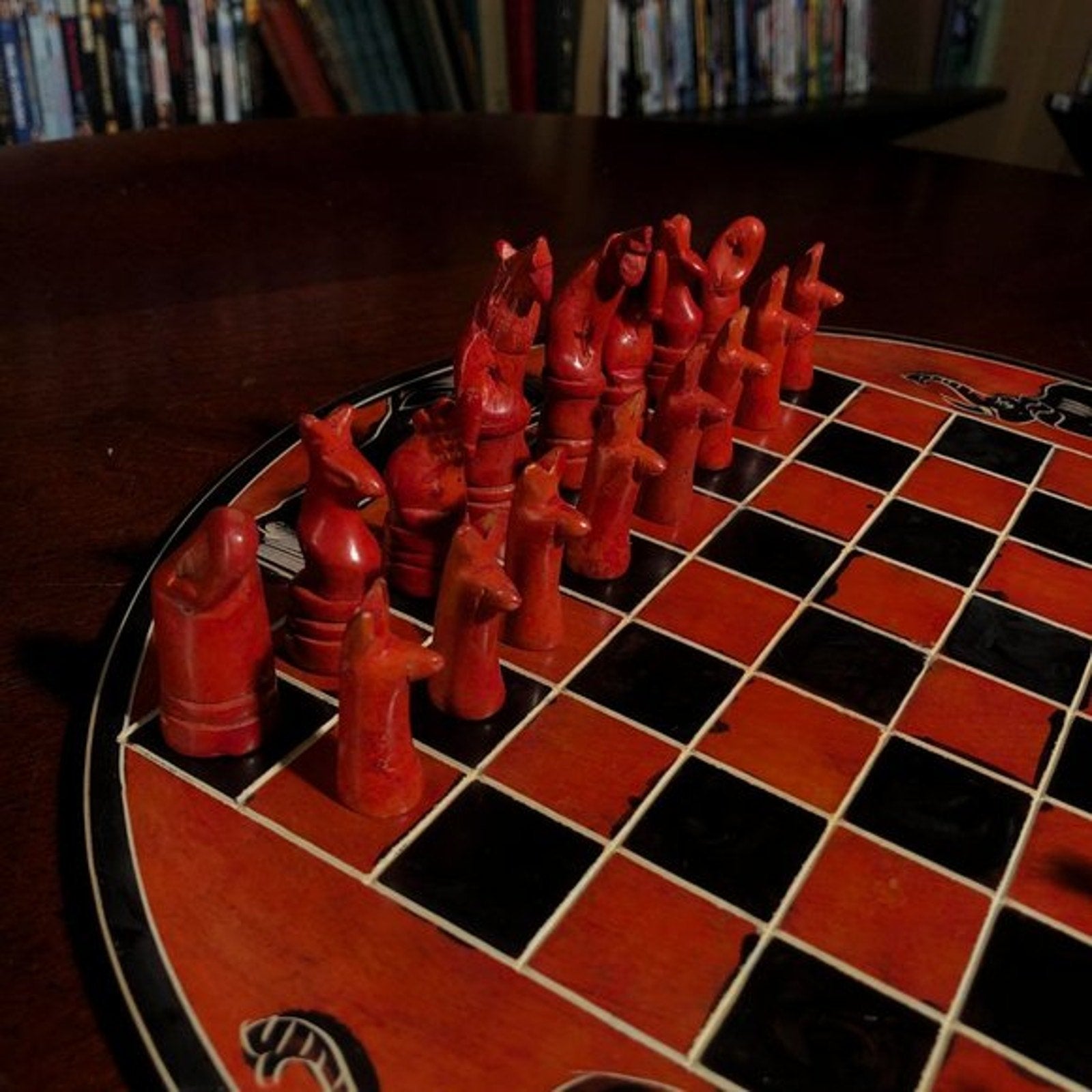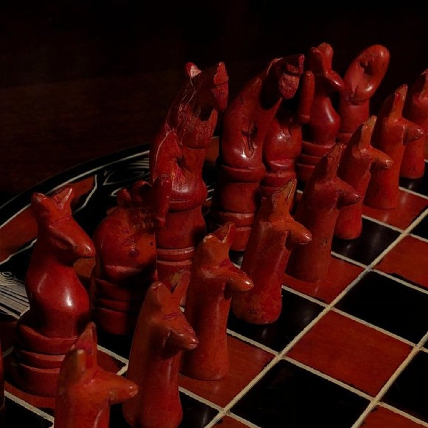 Crafted by African artisans in Western Kenya using traditional techniques, this soapstone chess set will become a conversation piece during play or on display! The board features square inlay pieces of natural painted soapstone. Each safari animal piece is hand carved in soapstone.