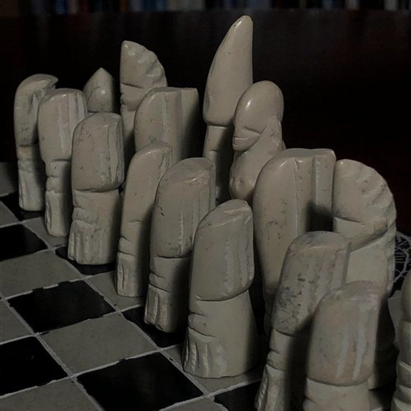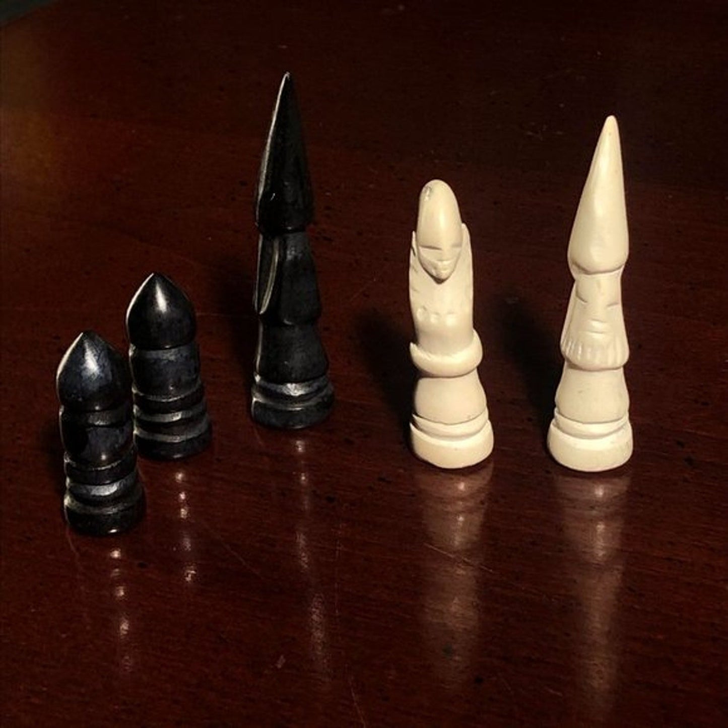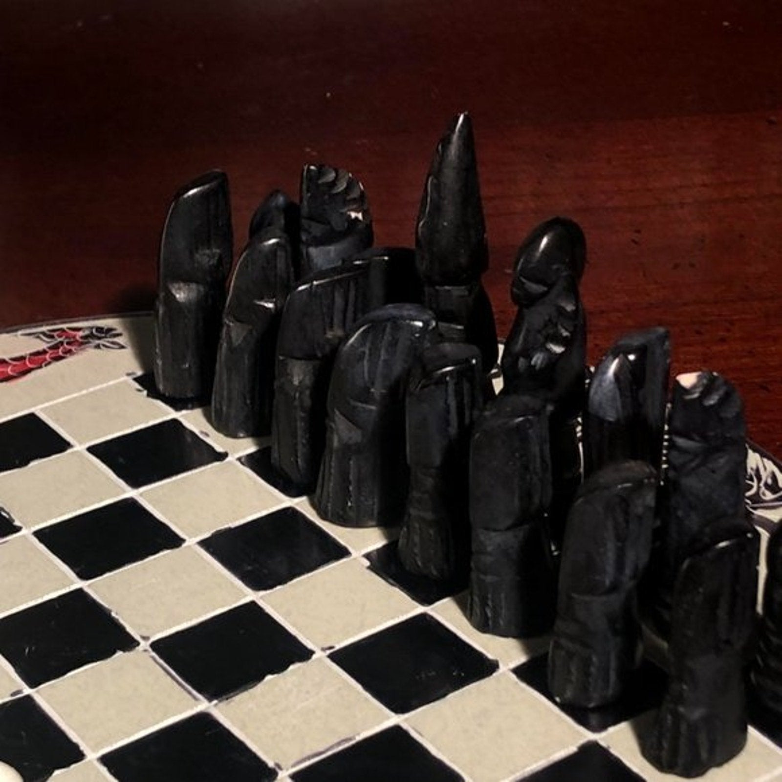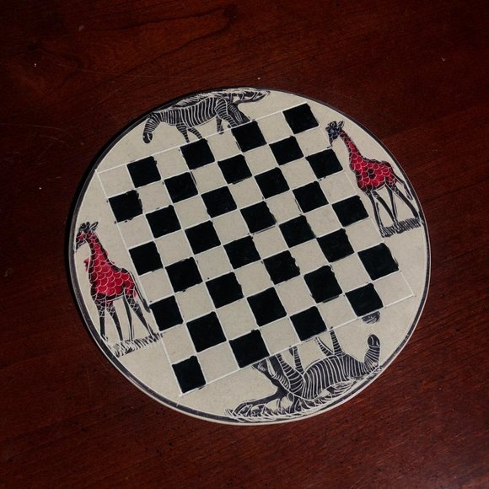 Crafted by African artisans in Western Kenya using traditional techniques, this soapstone chess set will become a conversation piece during play or on display! The board features square inlay pieces of natural painted soapstone. Each safari animal piece is hand carved in soapstone.