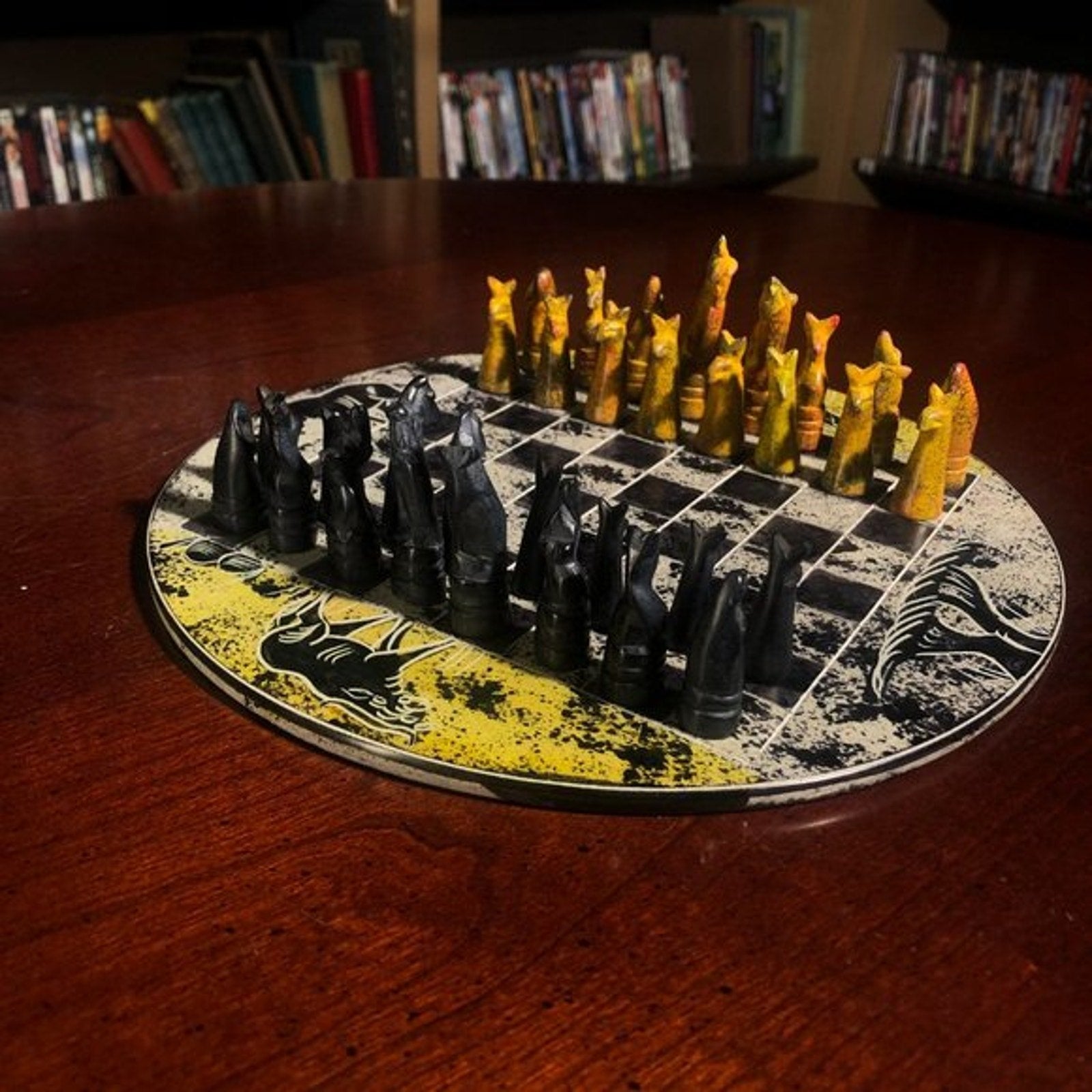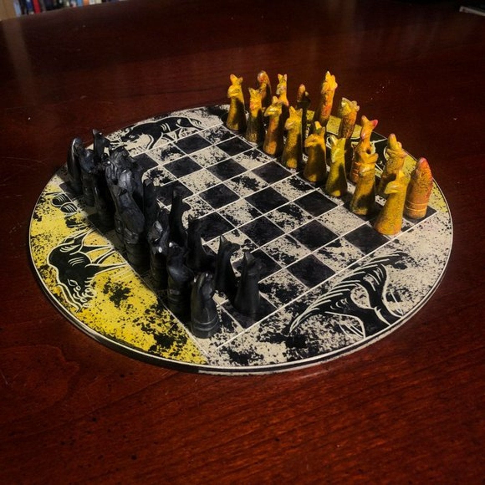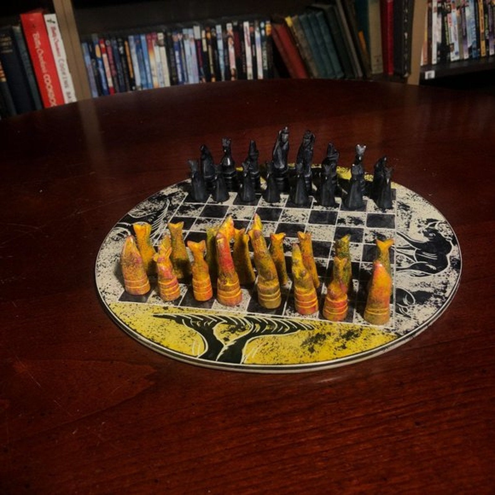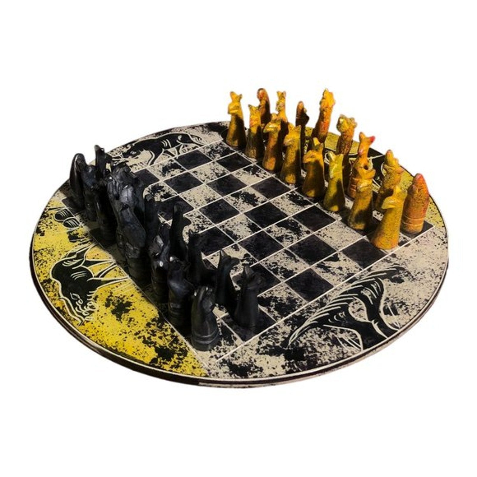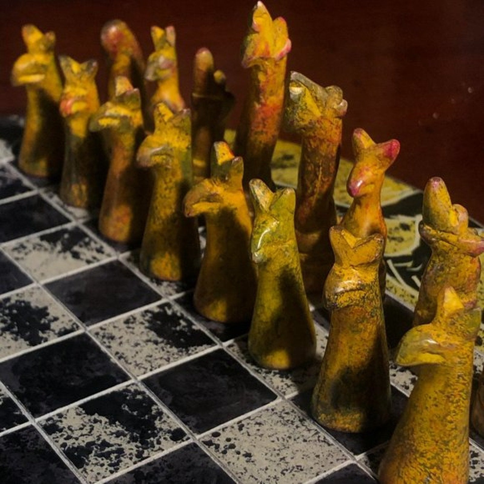 African Vintage Chess Set - Yellow Checkered Chess Board