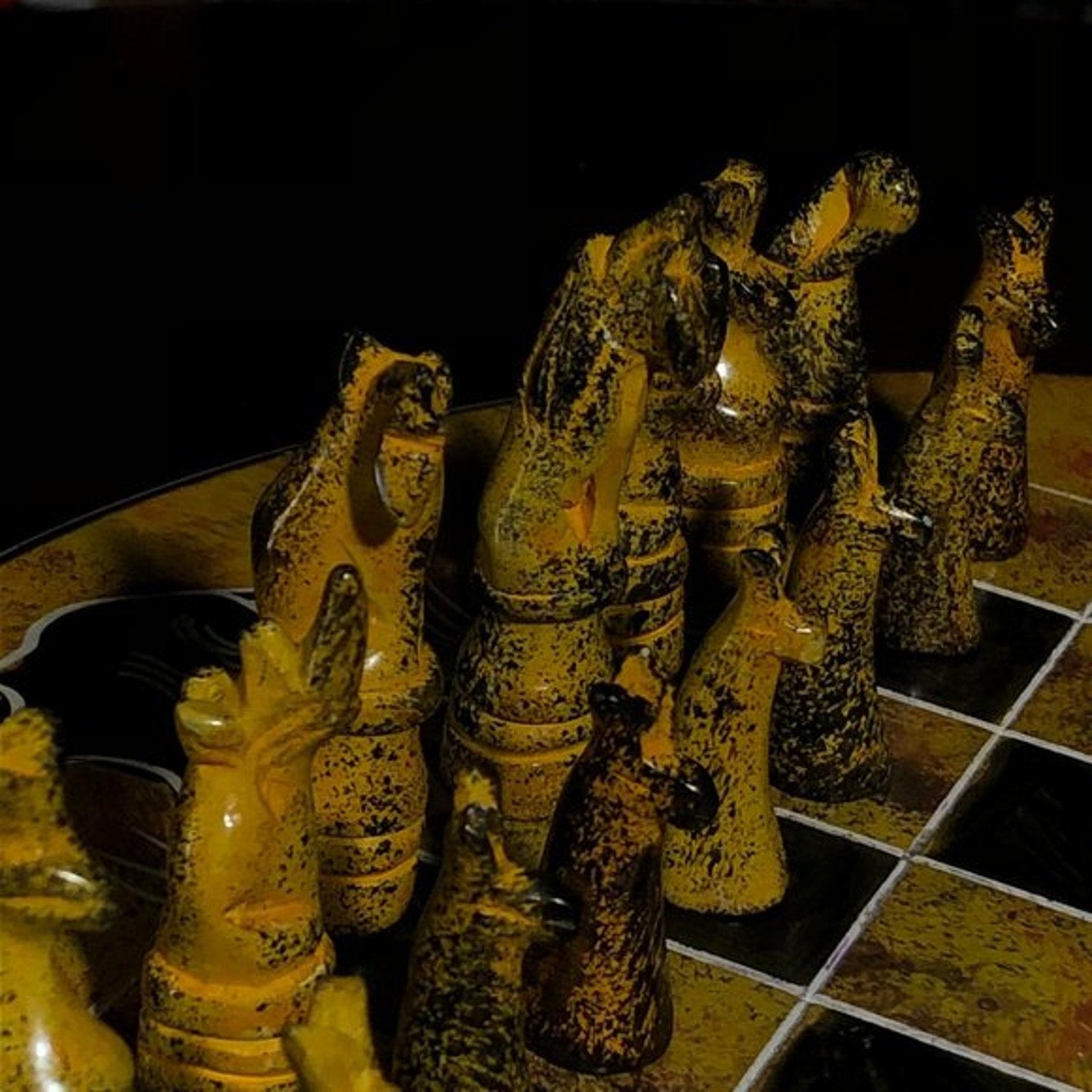 African Vintage Chess Set - Yellow Chess Board