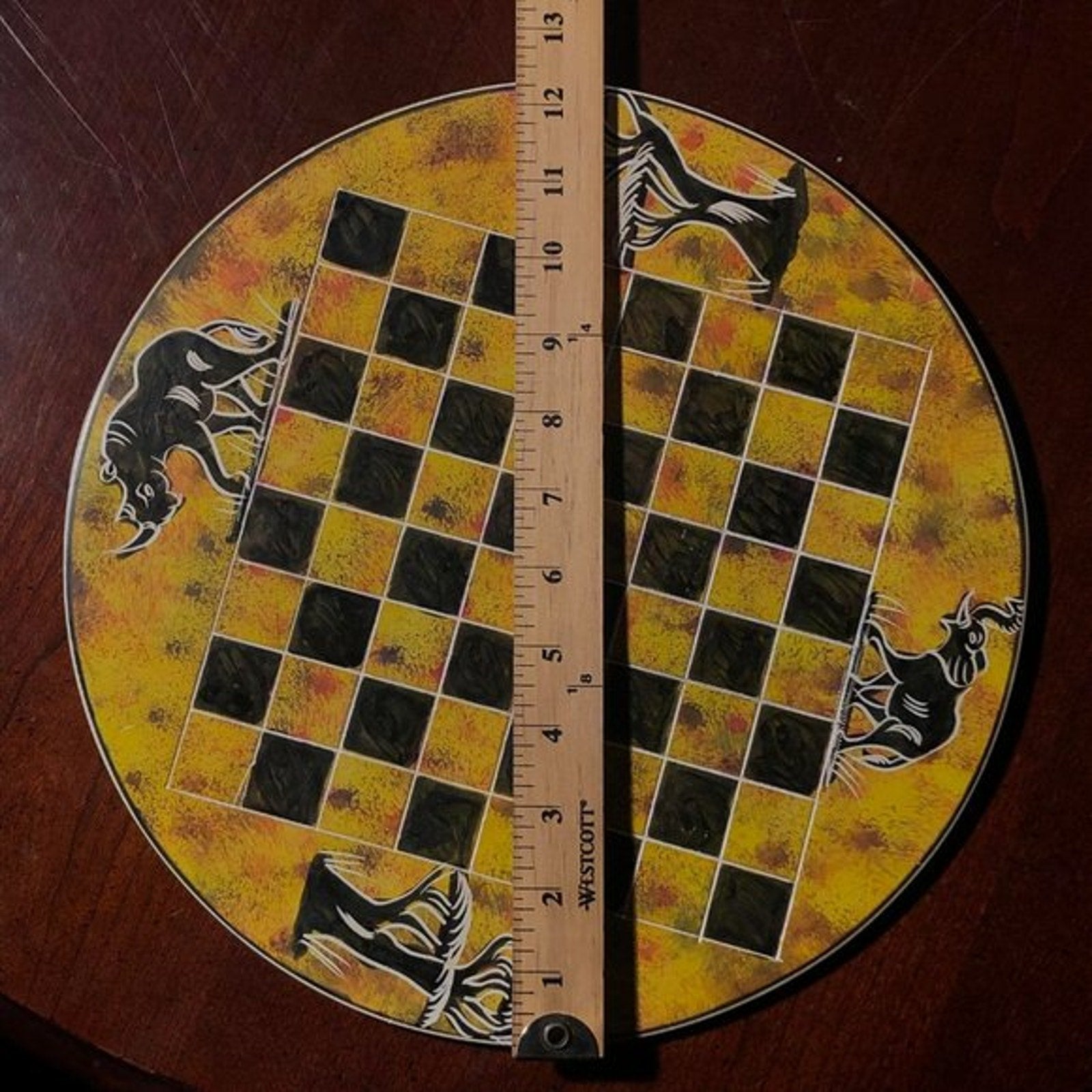 * Board and piece measurements in the photos.