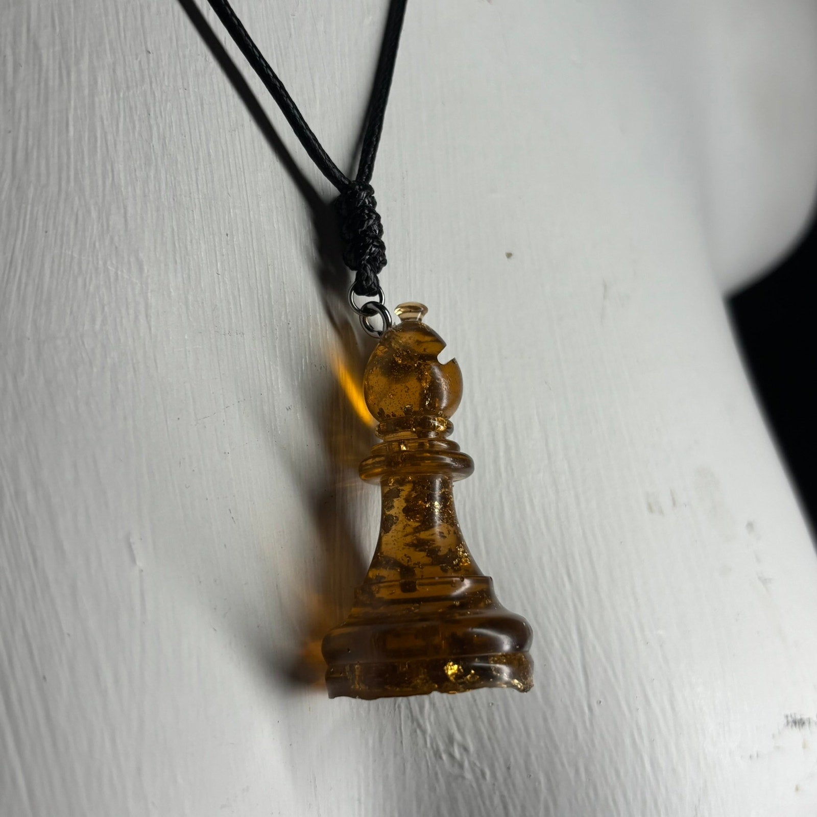 Add a touch of strategy and style to your look with this unique, handcrafted chess pendant necklace! Each necklace features a resin chess piece pendant, lovingly handmade to ensure quality and individuality.