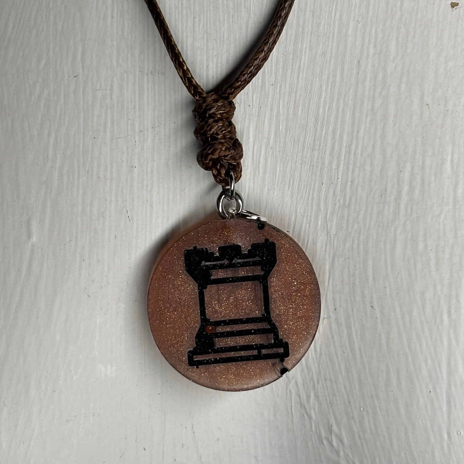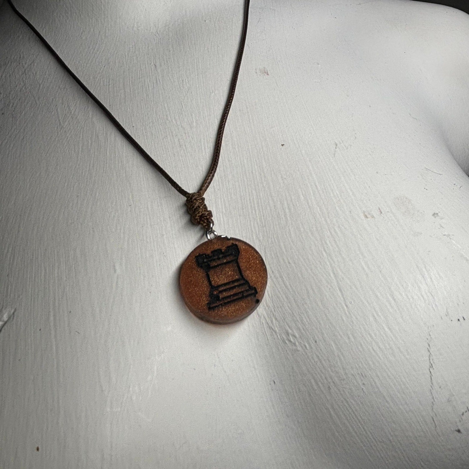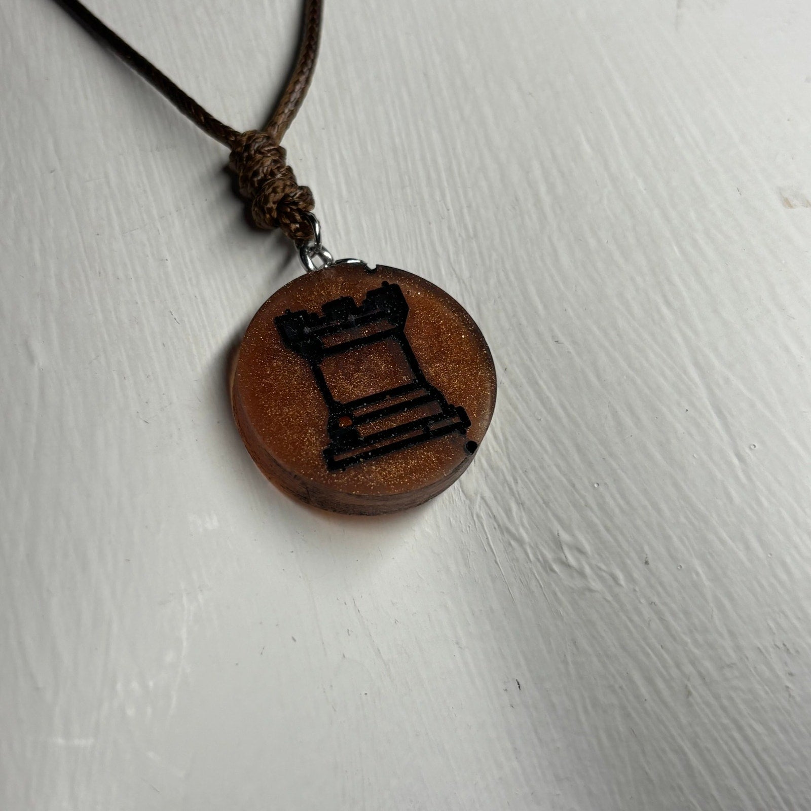 Amber Brown Rook - Handmade Resin Chess Necklace