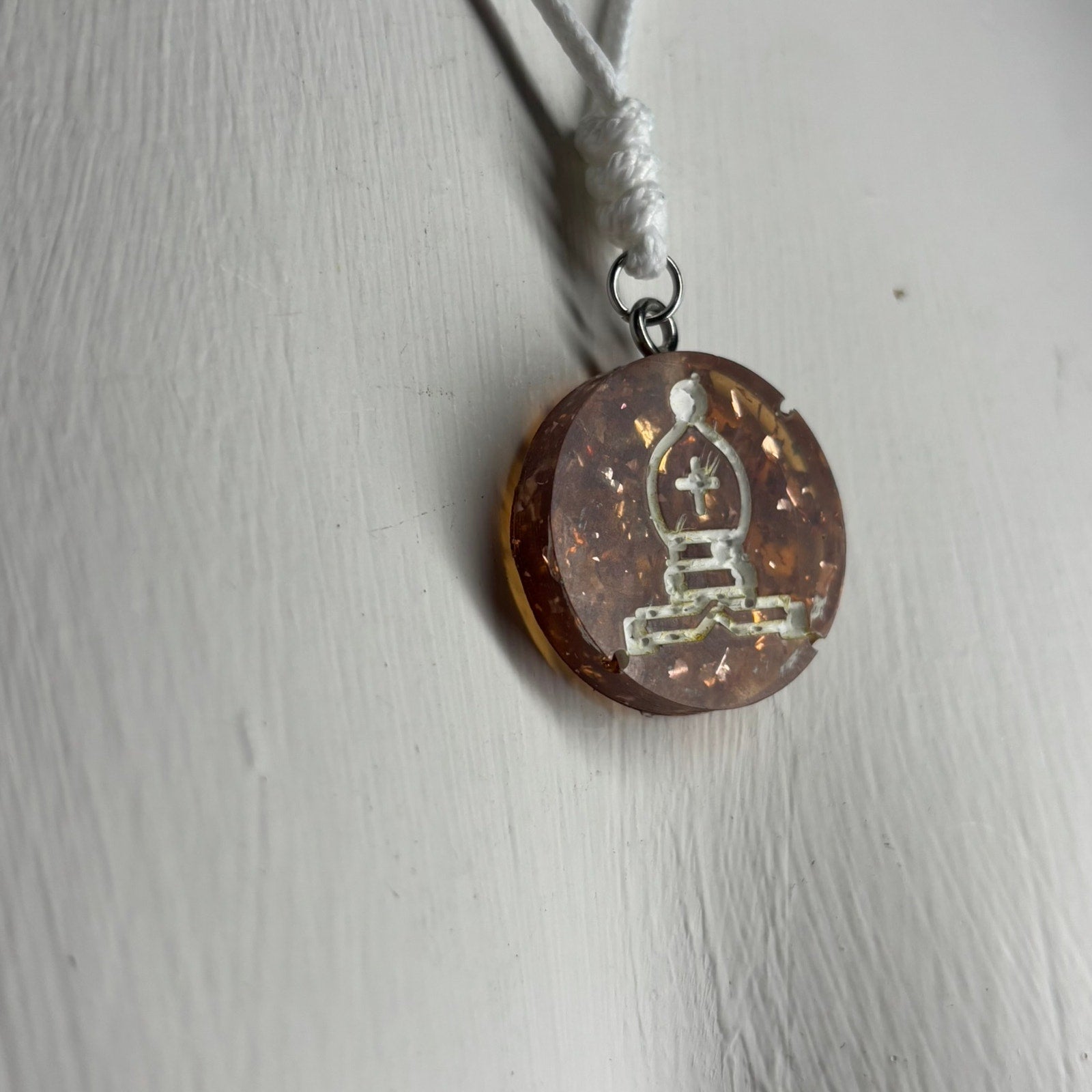 Amber Colored Bishop - Handmade Resin Chess Necklace