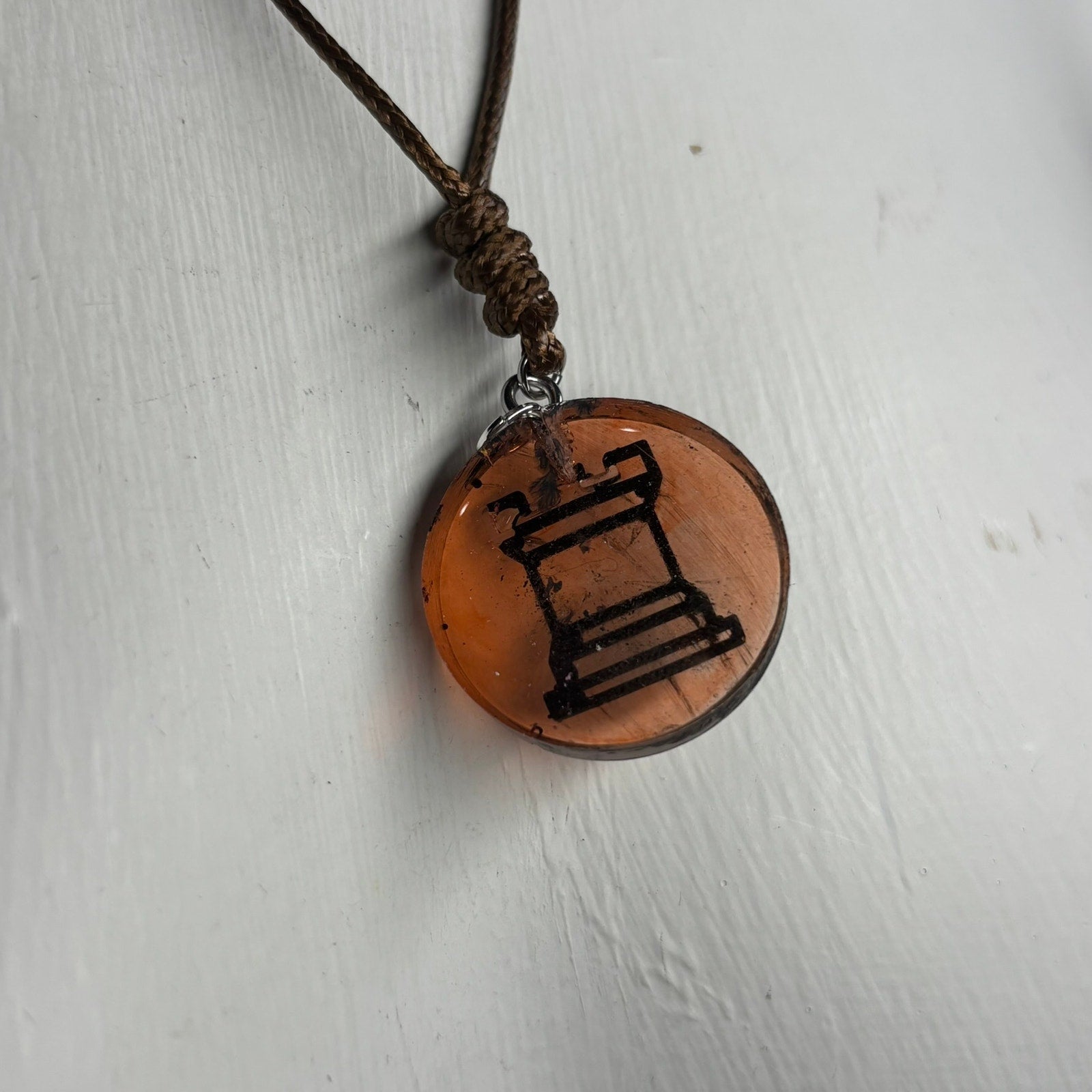 Amber Orange Rook - Handmade Resin Chess Necklace