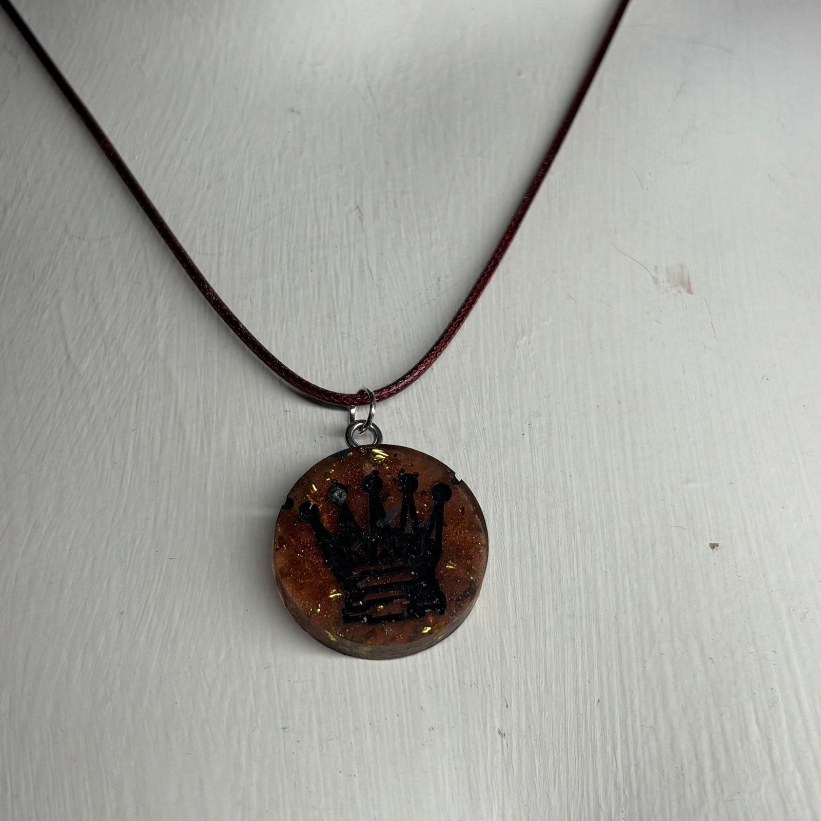 Add a touch of strategy and style to your look with this unique, handcrafted chess pendant necklace! Each necklace features a resin chess piece pendant, lovingly handmade to ensure quality and individuality.