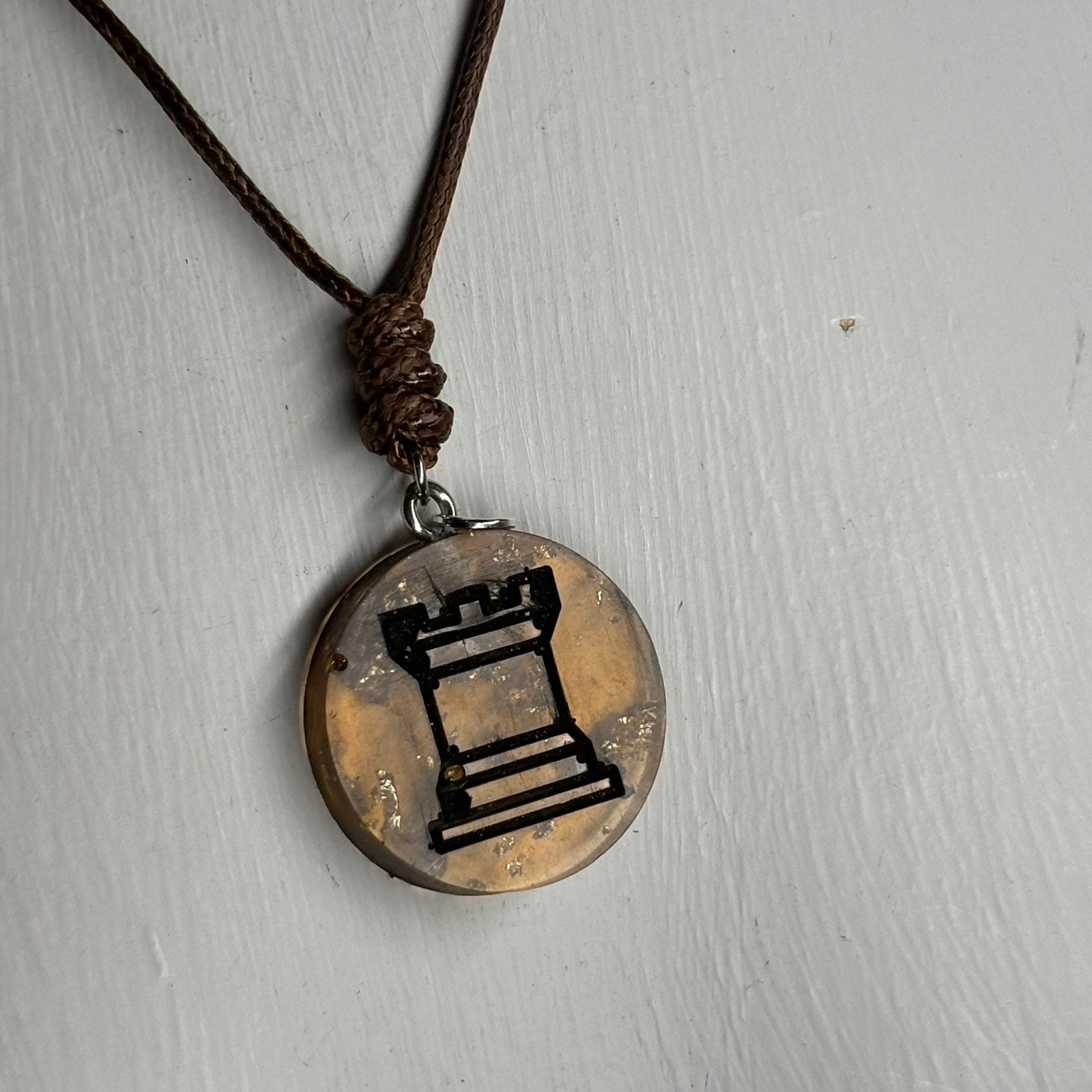 Amber Rook - Handmade Resin Chess Necklace