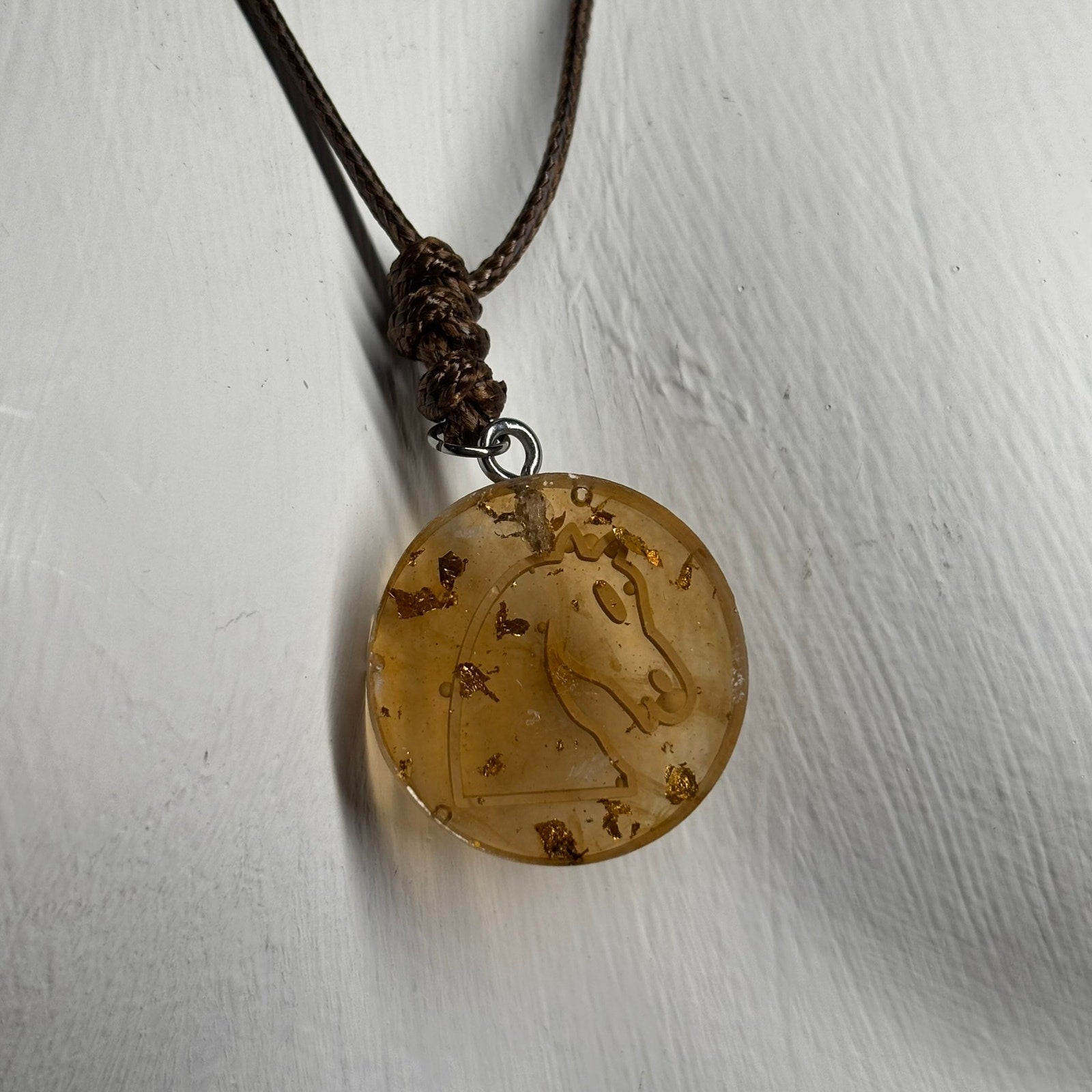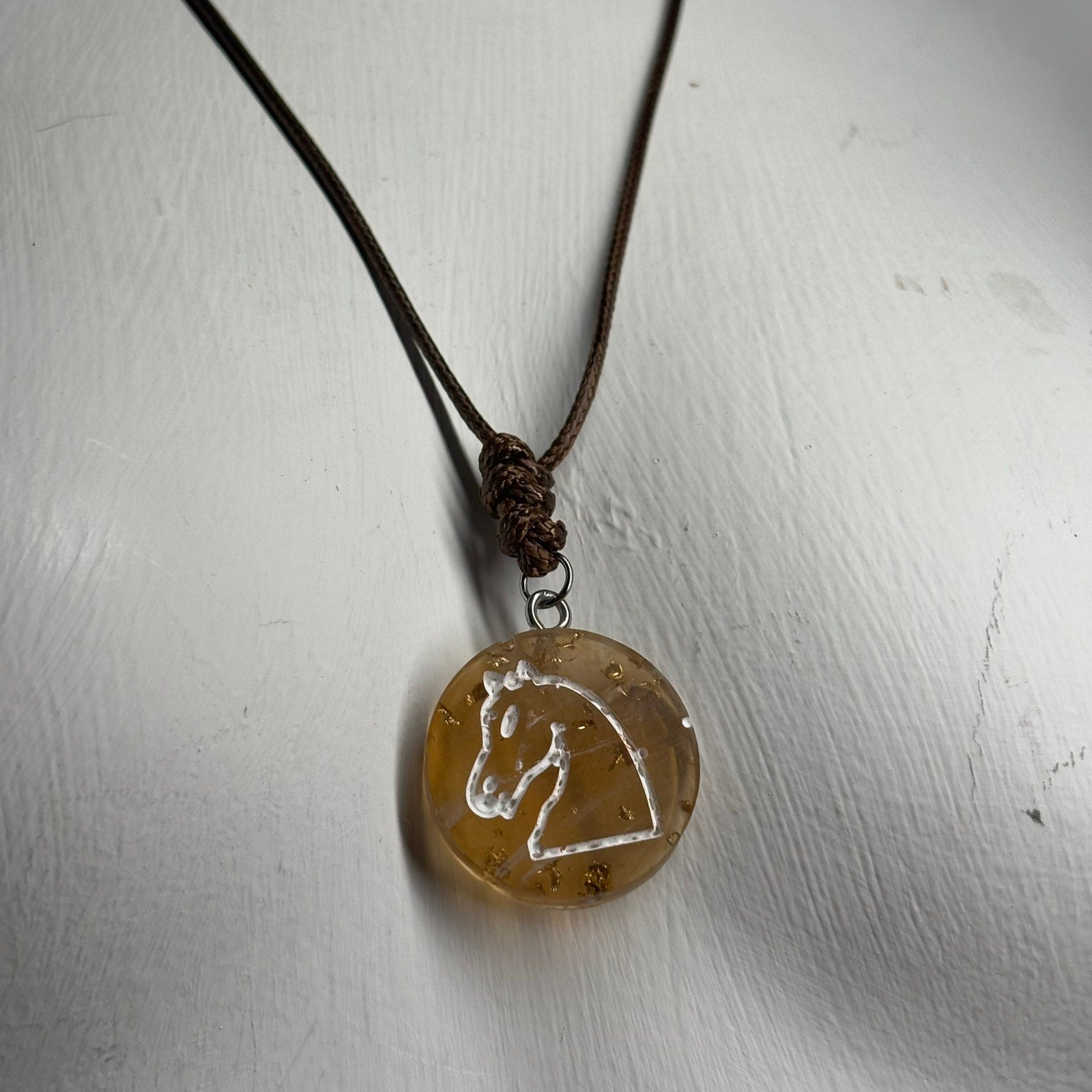 Amber Yellow Knight - Handmade Resin Chess Necklace