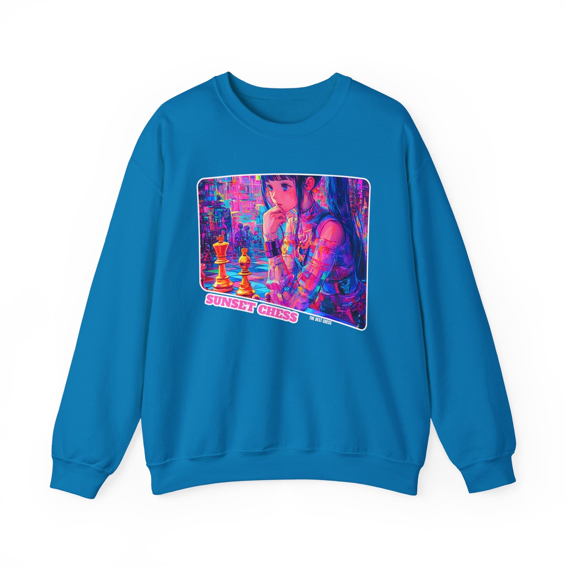 Anime Girl Thinks - Sapphire Blue Chess Crewneck Sweater