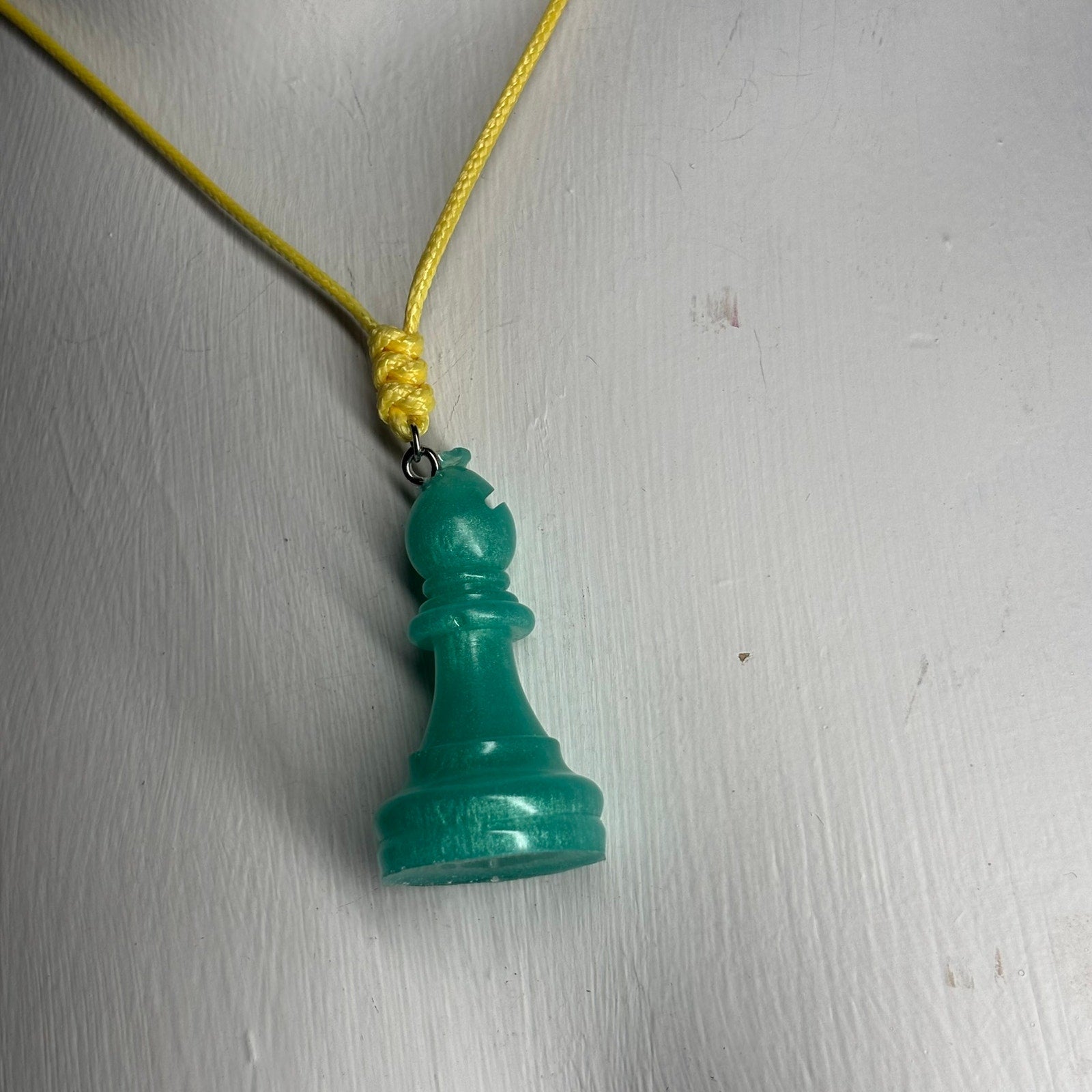 Aqua Green Bishop - Handmade Resin Chess Necklace