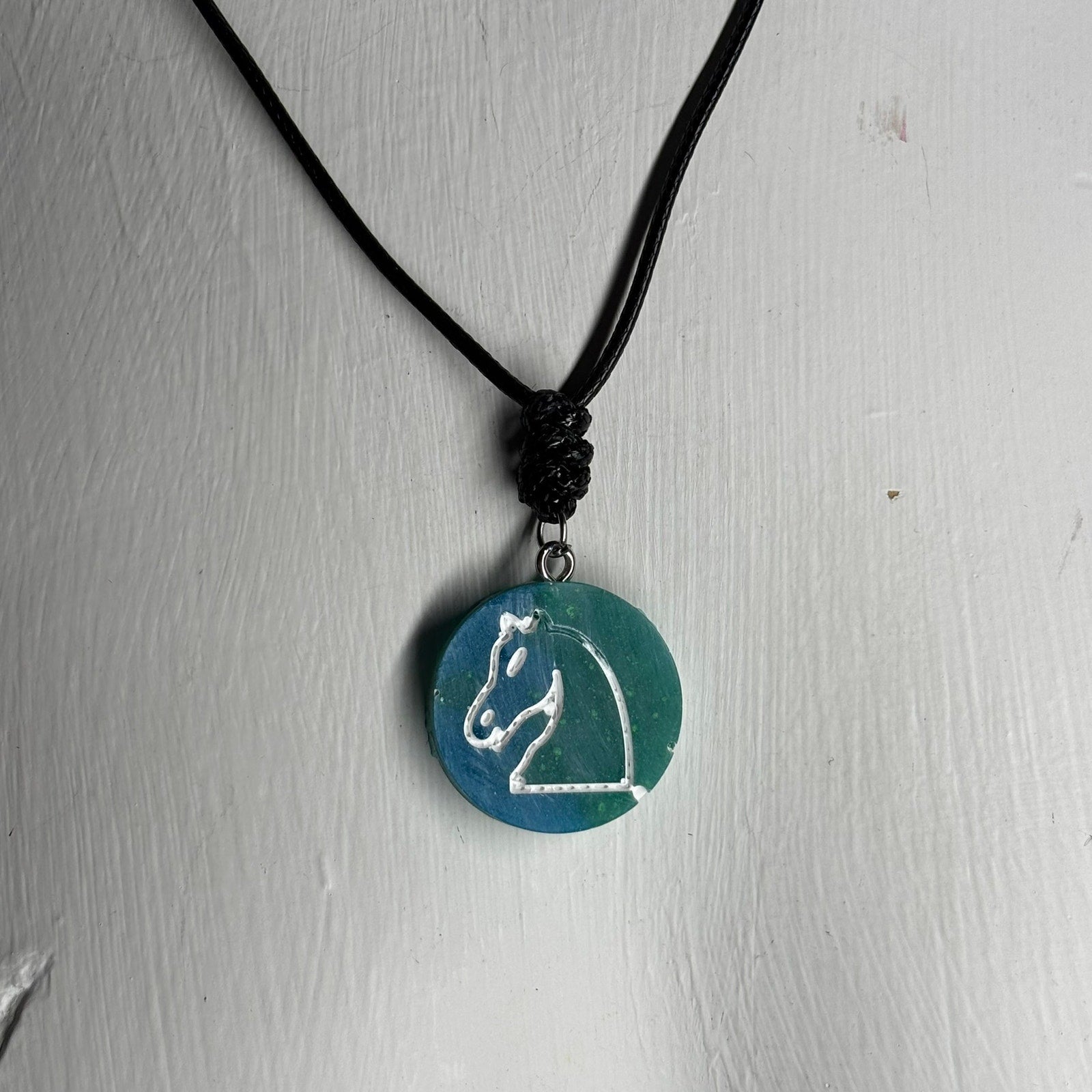 Aqua Green Knight - Handmade Resin Chess Necklace