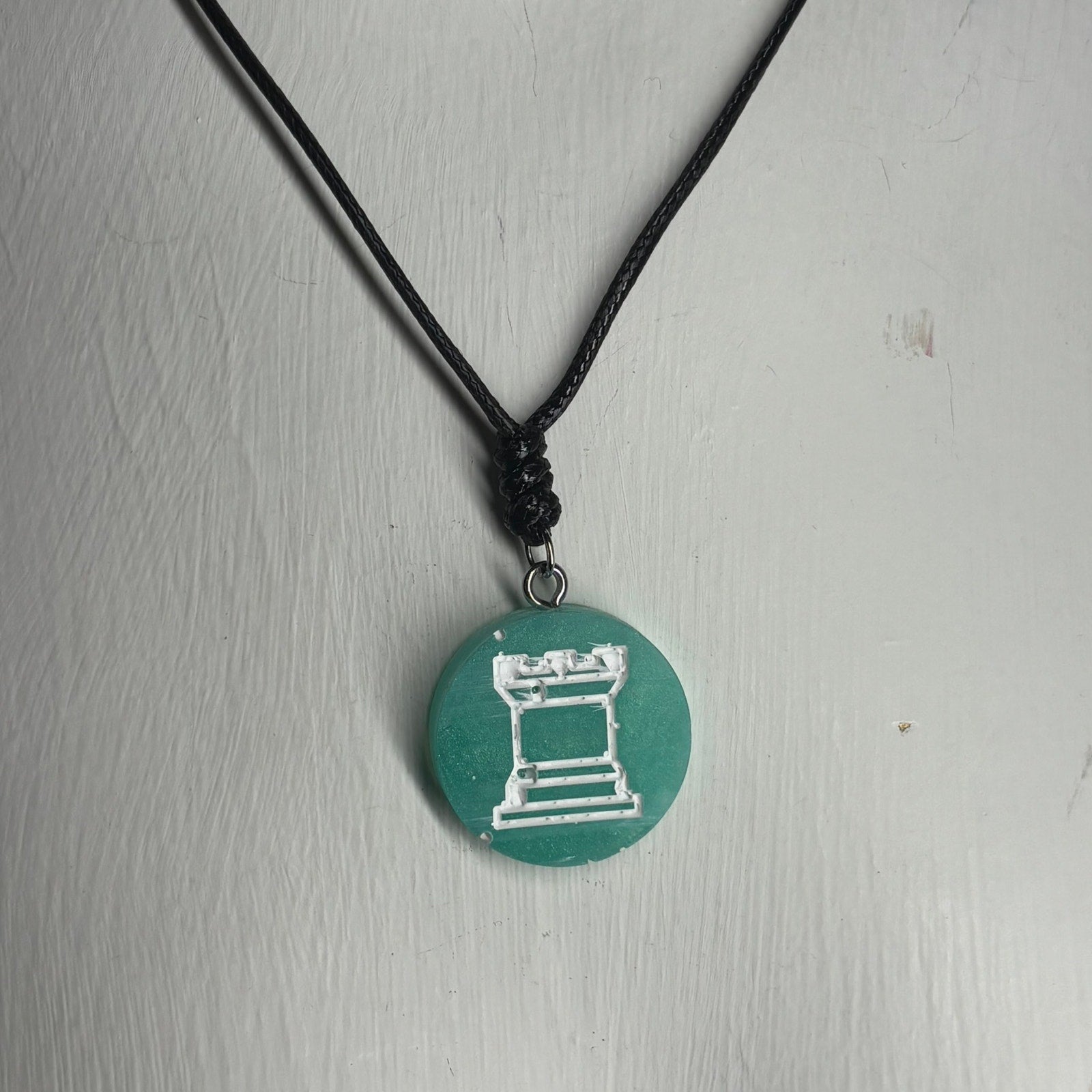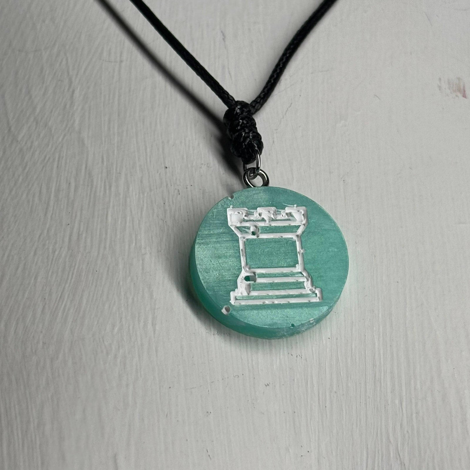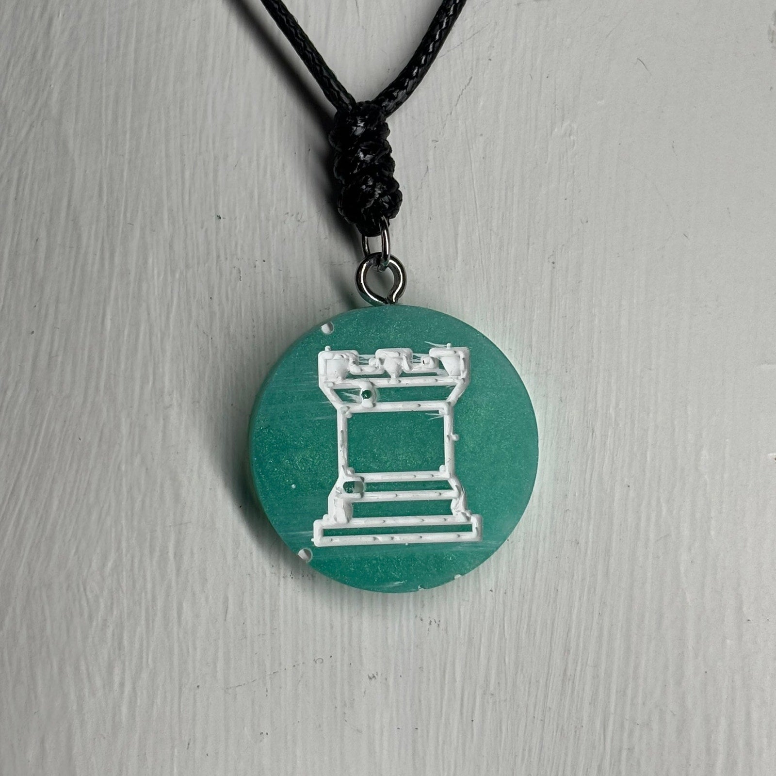Aqua Green Rook - Handmade Resin Chess Necklace