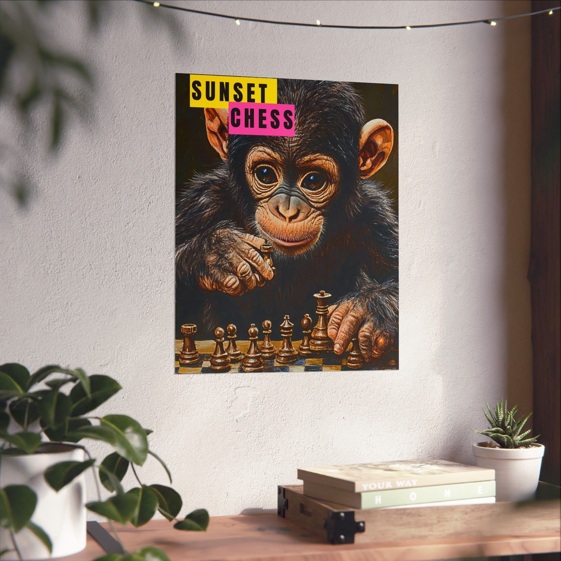 Baby Chimp Learns Chess - Matte Vertical Poster 16"x20"