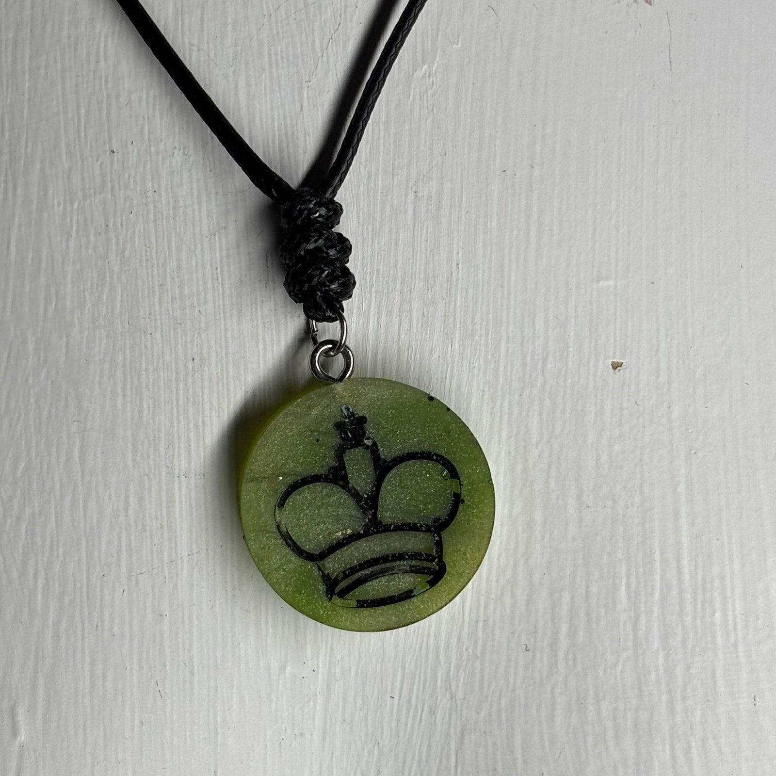 Battered Green King - Handmade Resin Chess Necklace