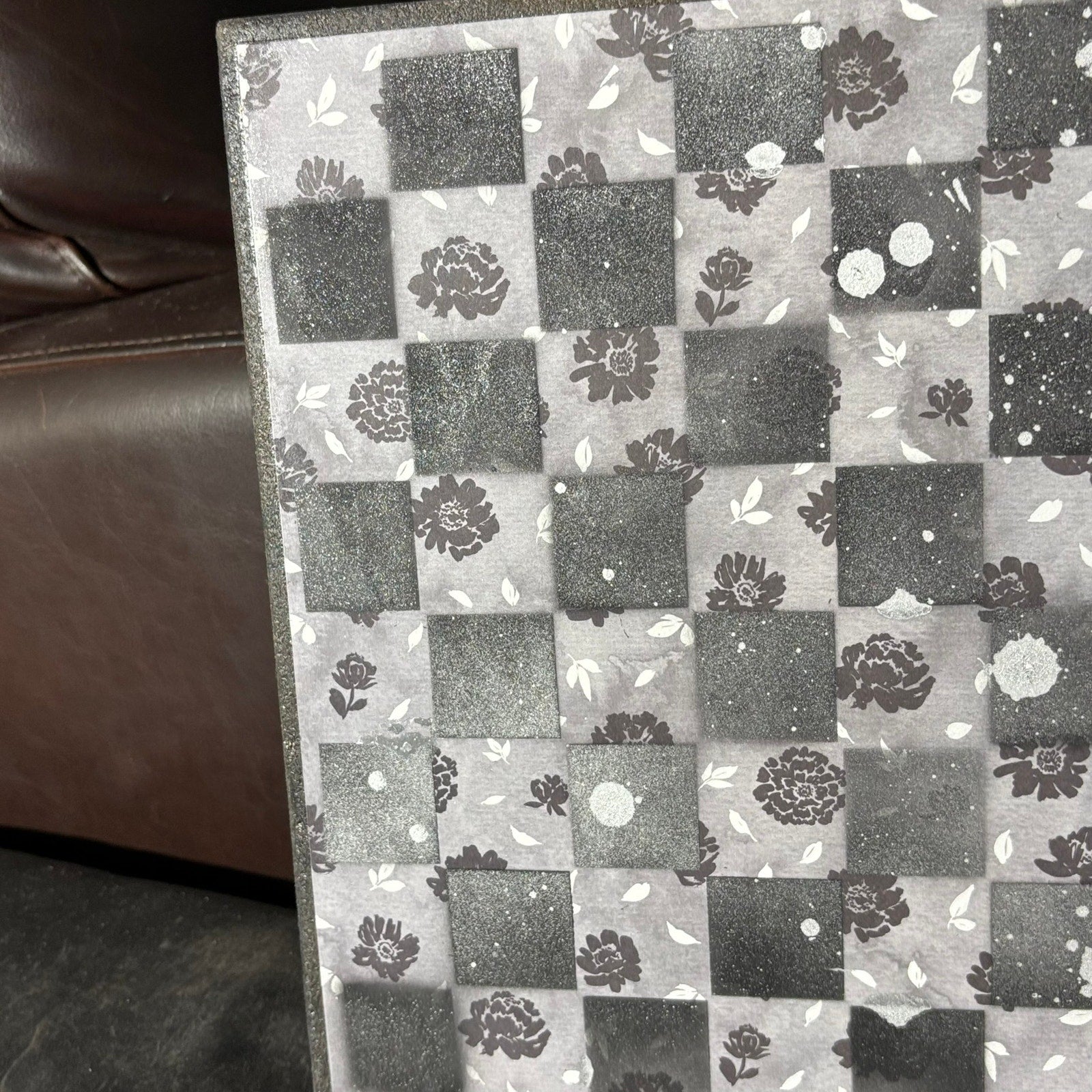 Each board features a layer of beautifully Scrapbook Paper Fused/Glued with particle board to give it a unique pretty pattern. We then paint squares onto the board to make them into fabulous chess boards. Made with a sturdy particle board base and smooth, beveled edges, this board is stunning.